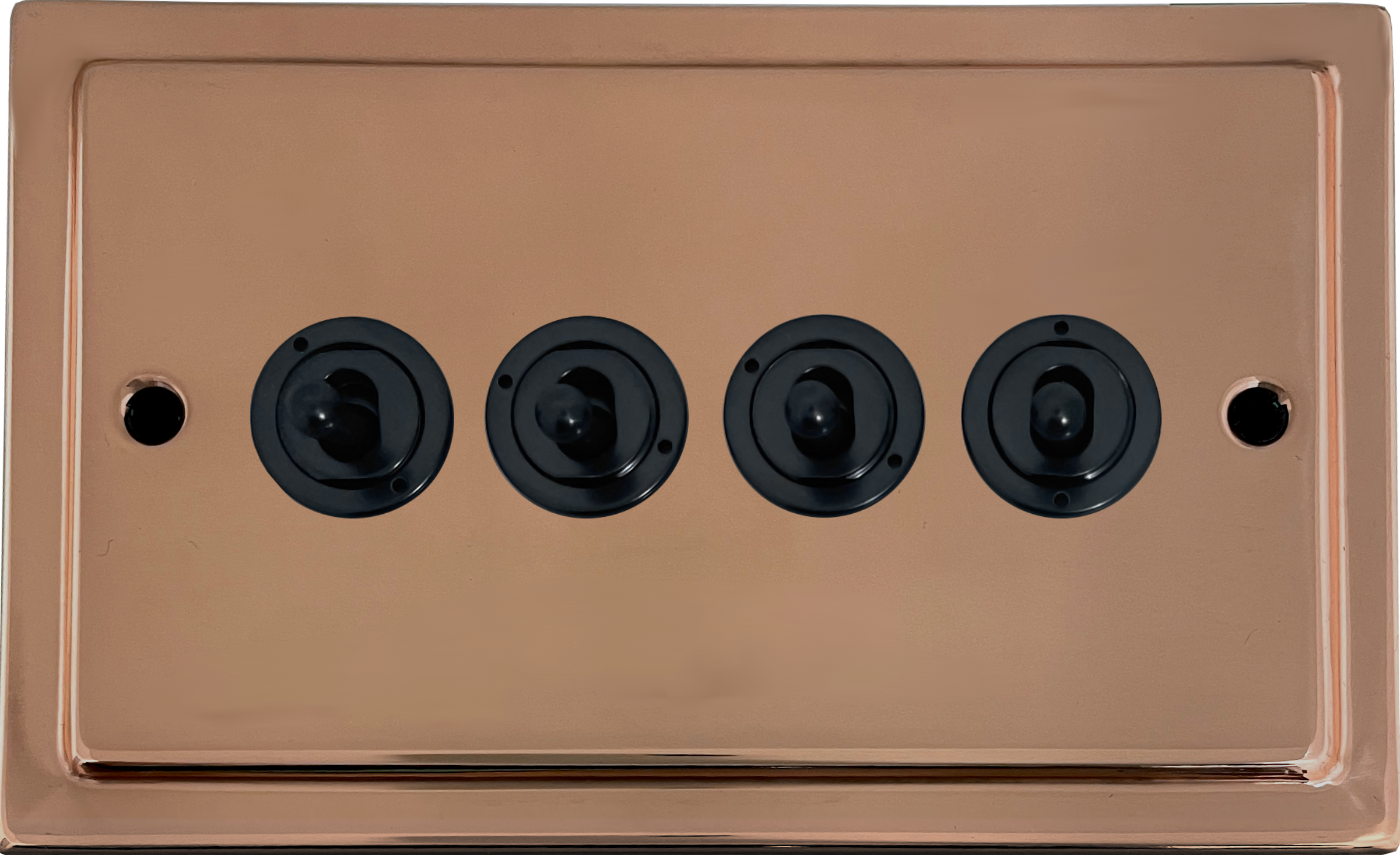 Victorian Copper Toggle Switch (4 Gang/Flat Black Toggle) - TBC384-FBK