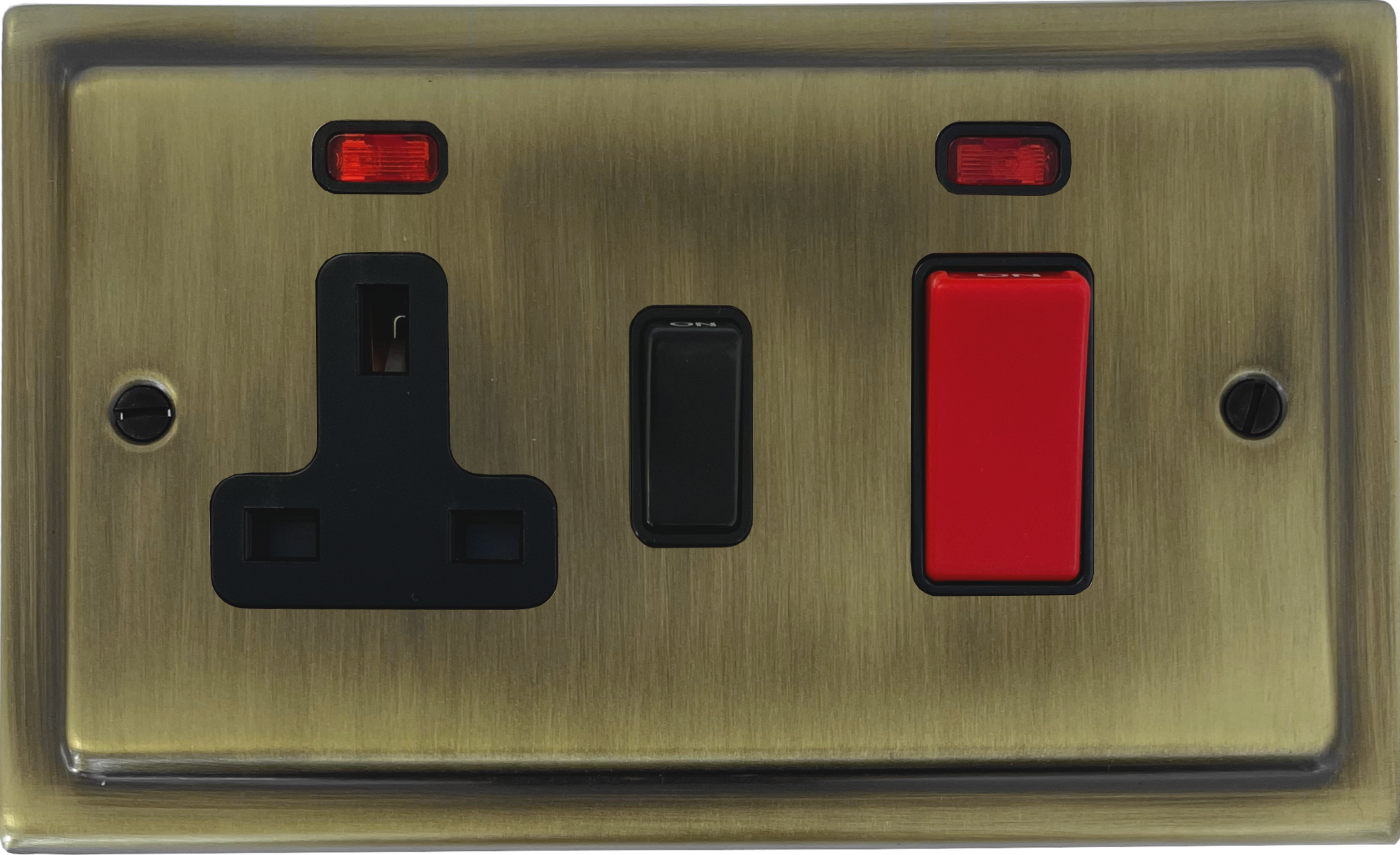 Victorian Light Antique Brass Cooker Switch with Socket (Black Switch) VI.29B.LAB