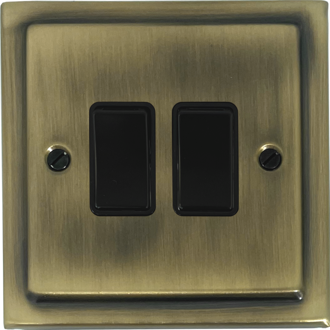 Victorian Light Antique Brass Switch (2 Gang/Black Switches) VI.2B.LAB