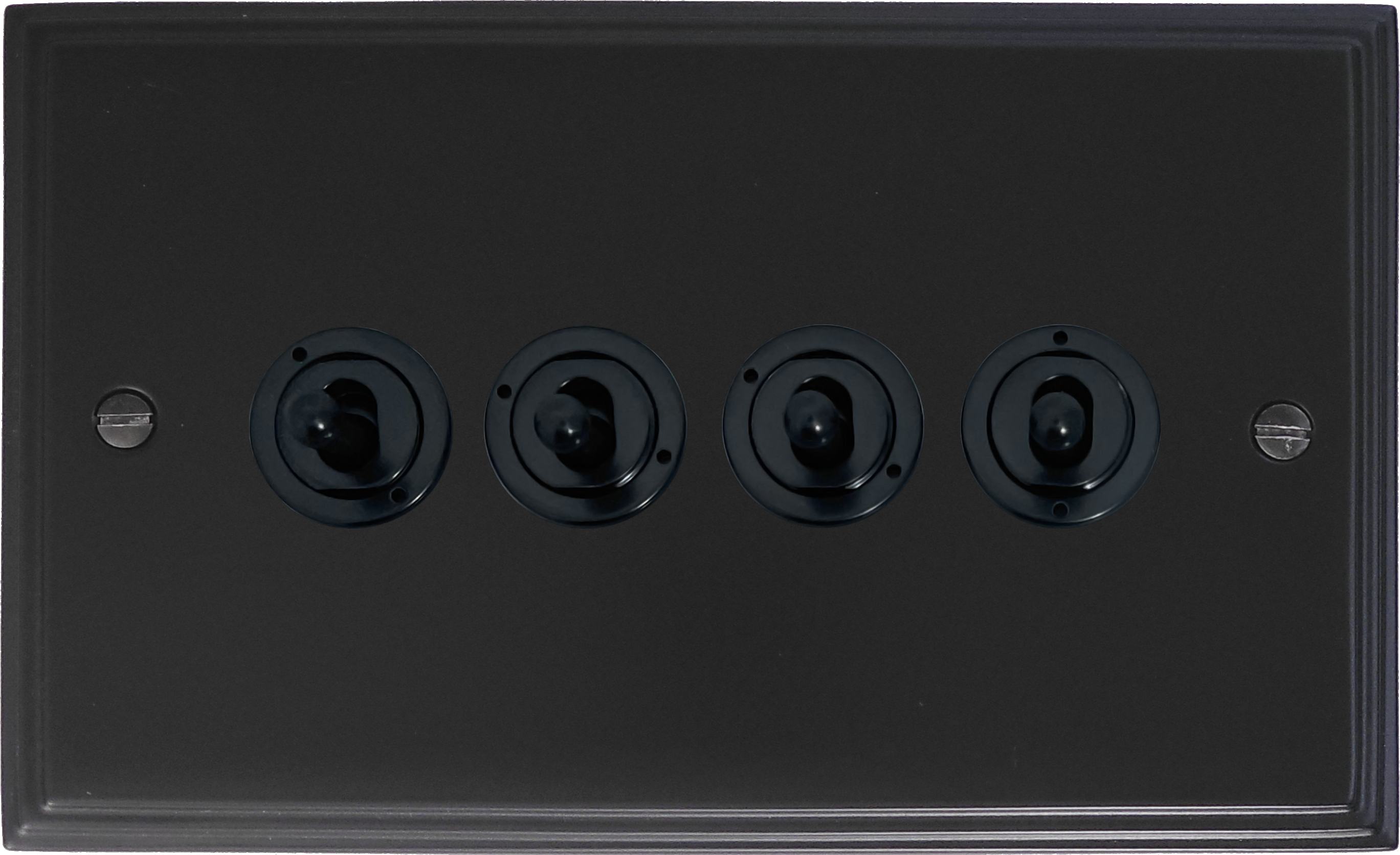 Victorian Matt Black Toggle Plate (4 Gang/Flat Black Toggle) VC.384FBK.FB