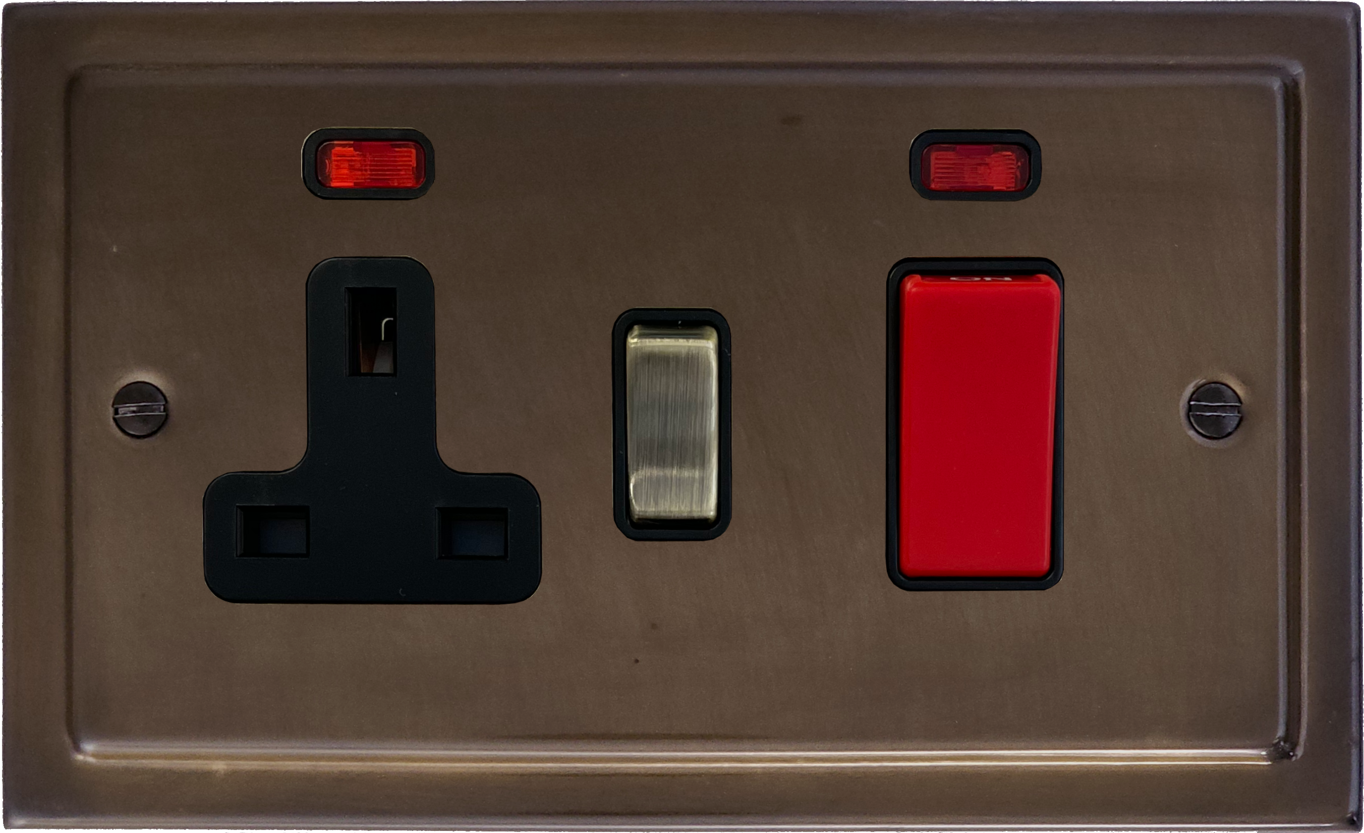 Victorian Medium Bronze Cooker Switch with Socket (Black inserts/Red/Antique Brass Switch) VI.329AB.MBZ