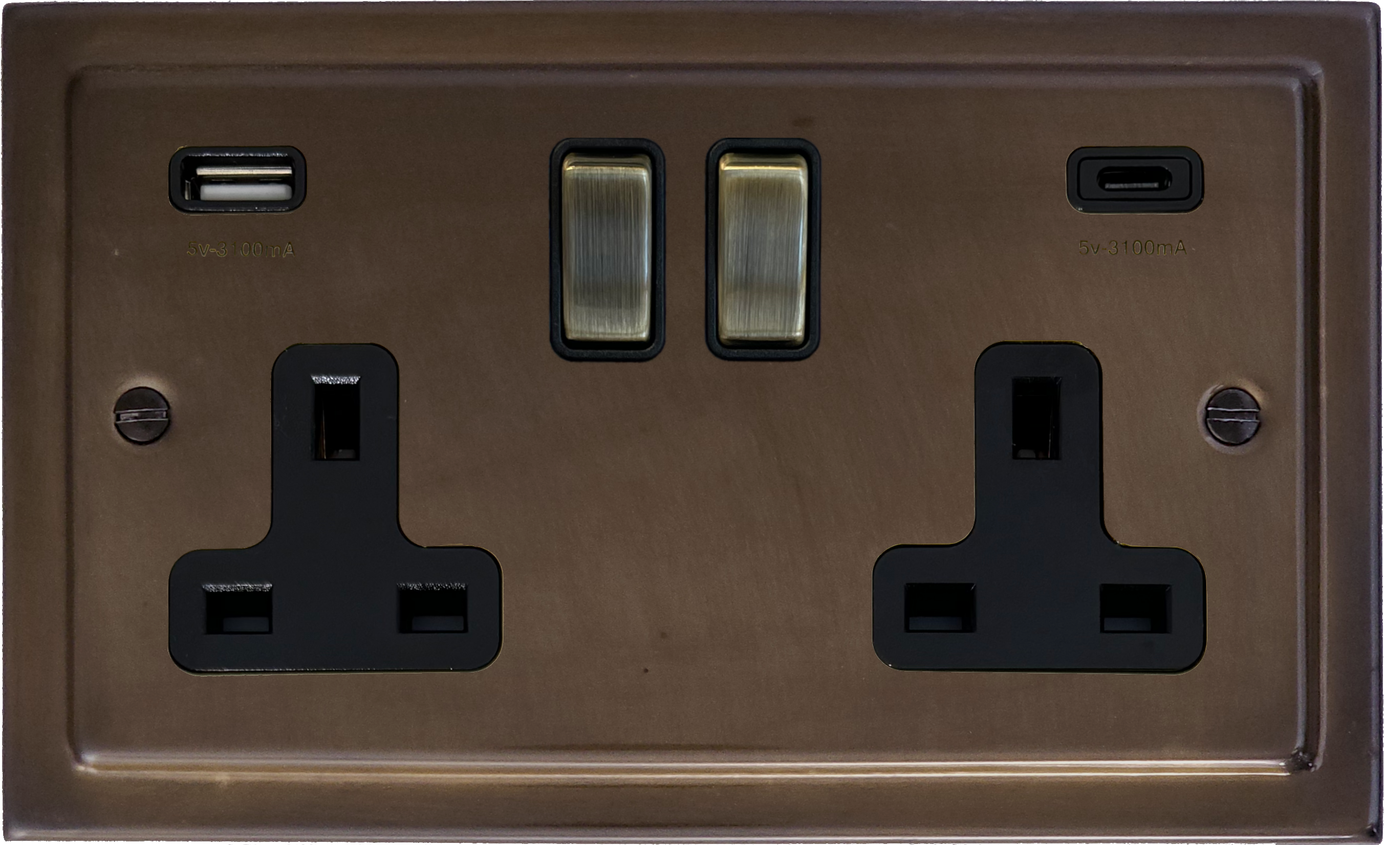 Victorian Medium Bronze Double Socket (2 Gang/USB-A and USB-C/Antique Brass Switches) VI.3911AB.MBZ