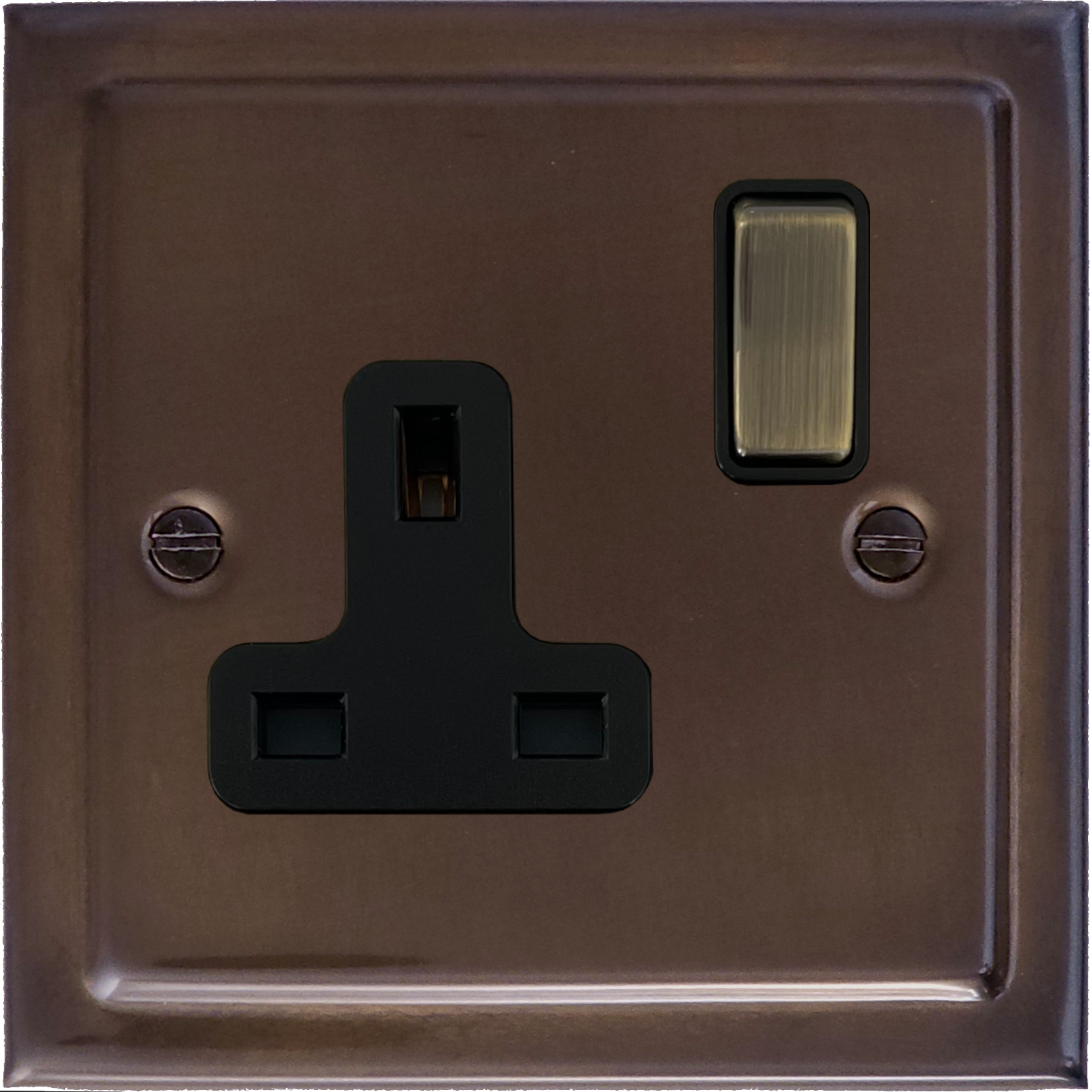 Victorian Medium Bronze Single Socket (Black Insert/Antique Brass Switch) - TMBZ309-AB