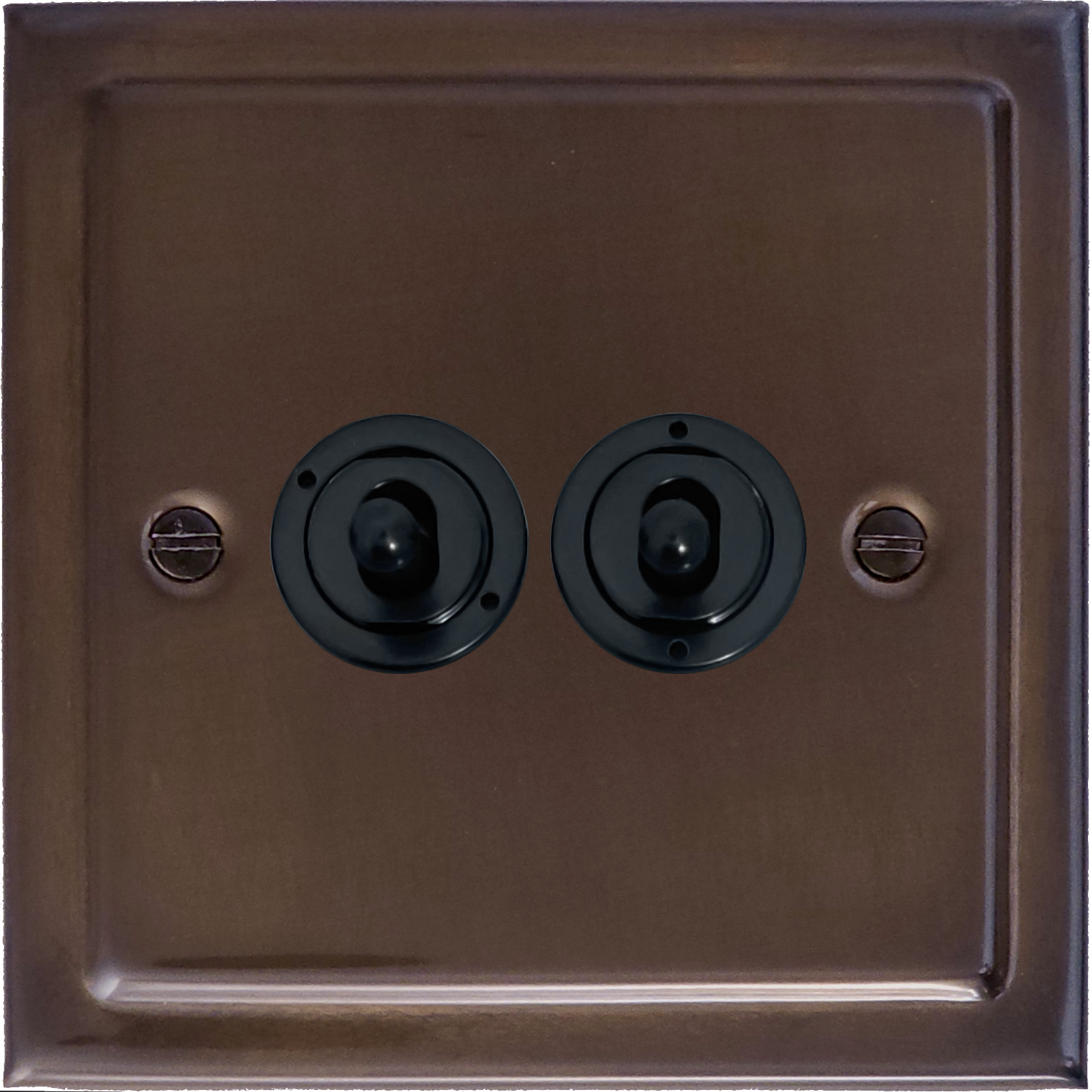 Victorian Medium Bronze Toggle Switch (2 Gang/Black Toggles) - TMBZ382-FBK