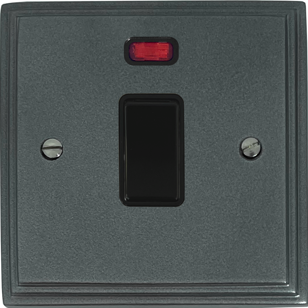 Victorian Pewter 20A DP Switch with Neon (Black Insert/Black Switch) VC.26B.P
