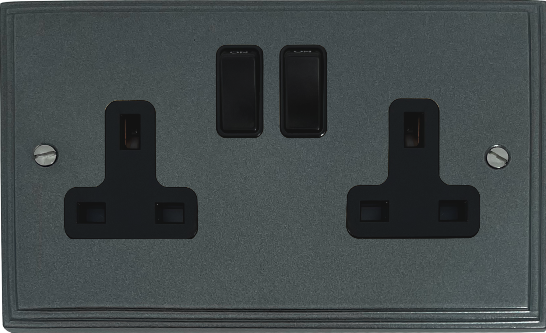 Victorian Pewter Double Socket (Black Insert/Black Switch) VC.10B.P