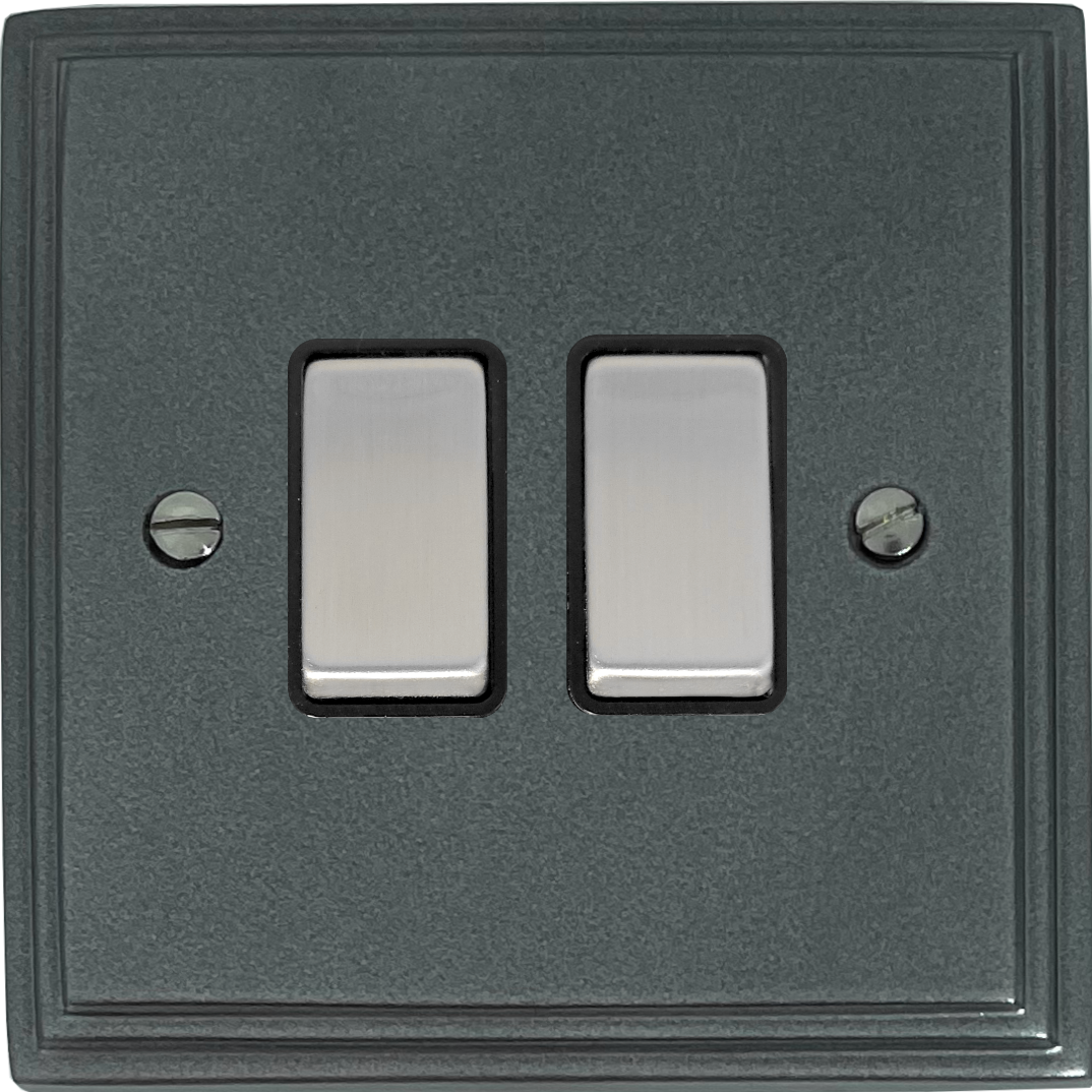 Victorian Pewter Light Switch (2 Gang/Black Insert/Satin Chrome Switch) VC.302.P