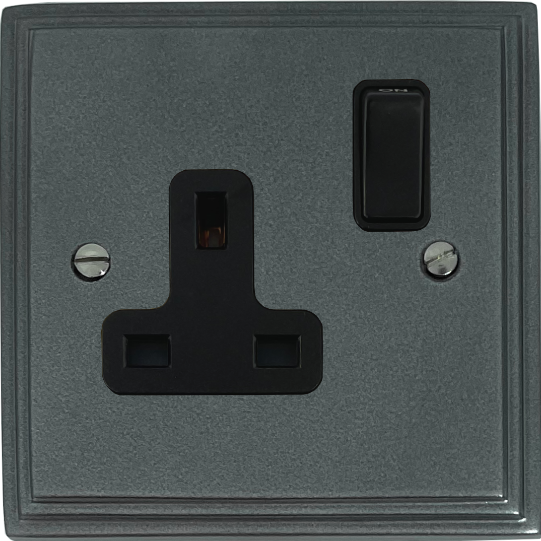 Victorian Pewter Single Socket (Black Insert/Black Switch) VC.9B.P