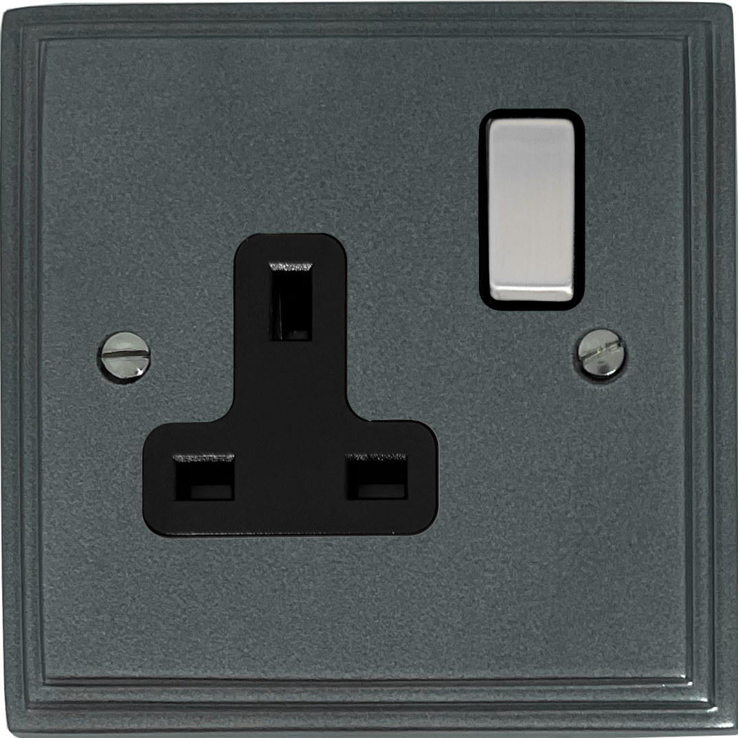 Victorian Pewter Single Socket (Black Insert/Satin Chrome Switch) VC.309.P