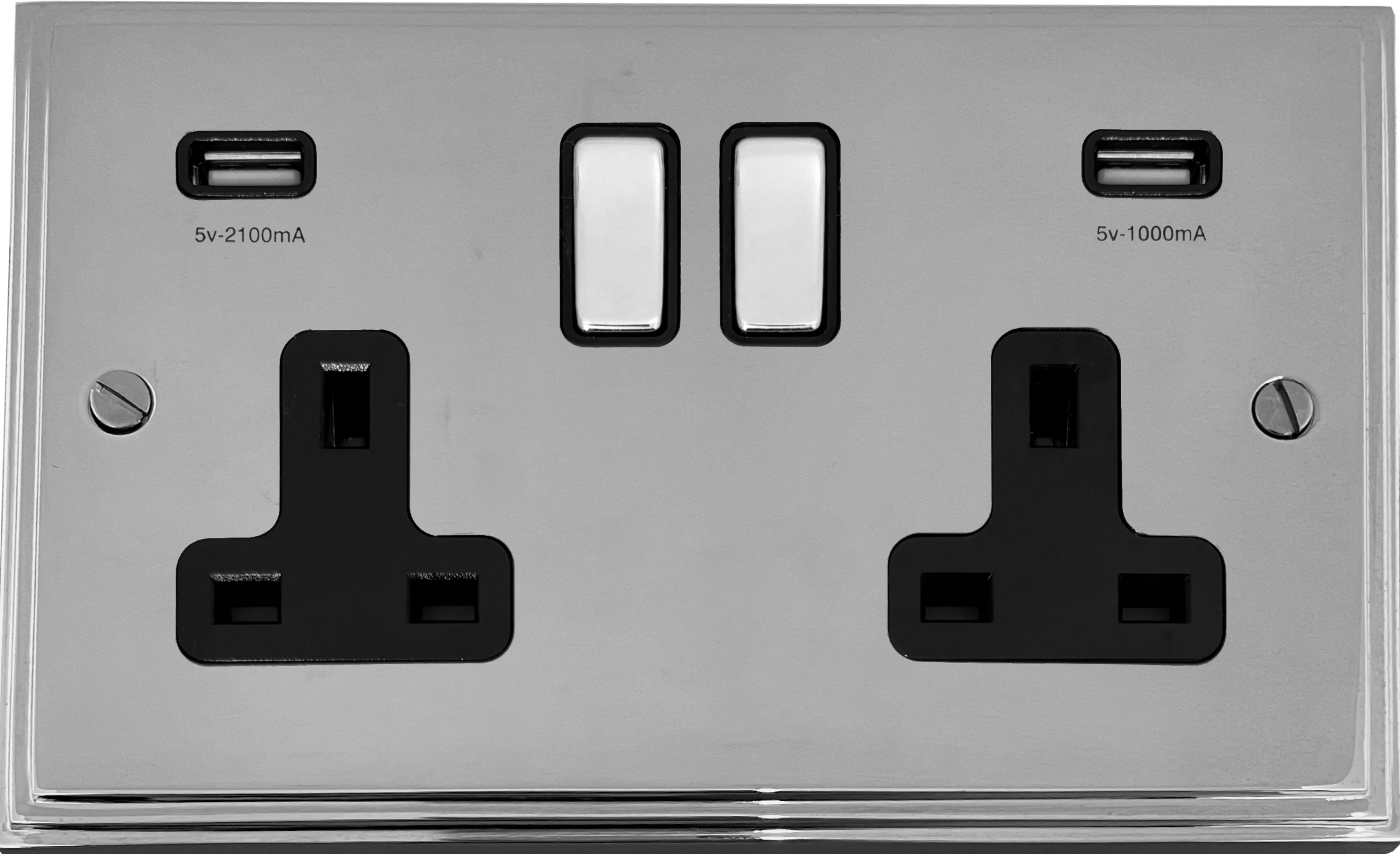 Victorian Polished Chrome Double Socket with USB (Chrome Switch/Black Inserts) VC.3910.C
