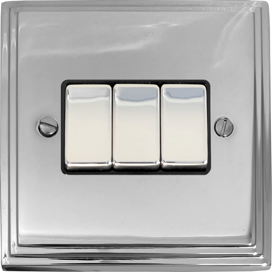 Victorian Polished Chrome Light Switch (3 Gang/Black Insert/Chrome Switches) VC.303.C