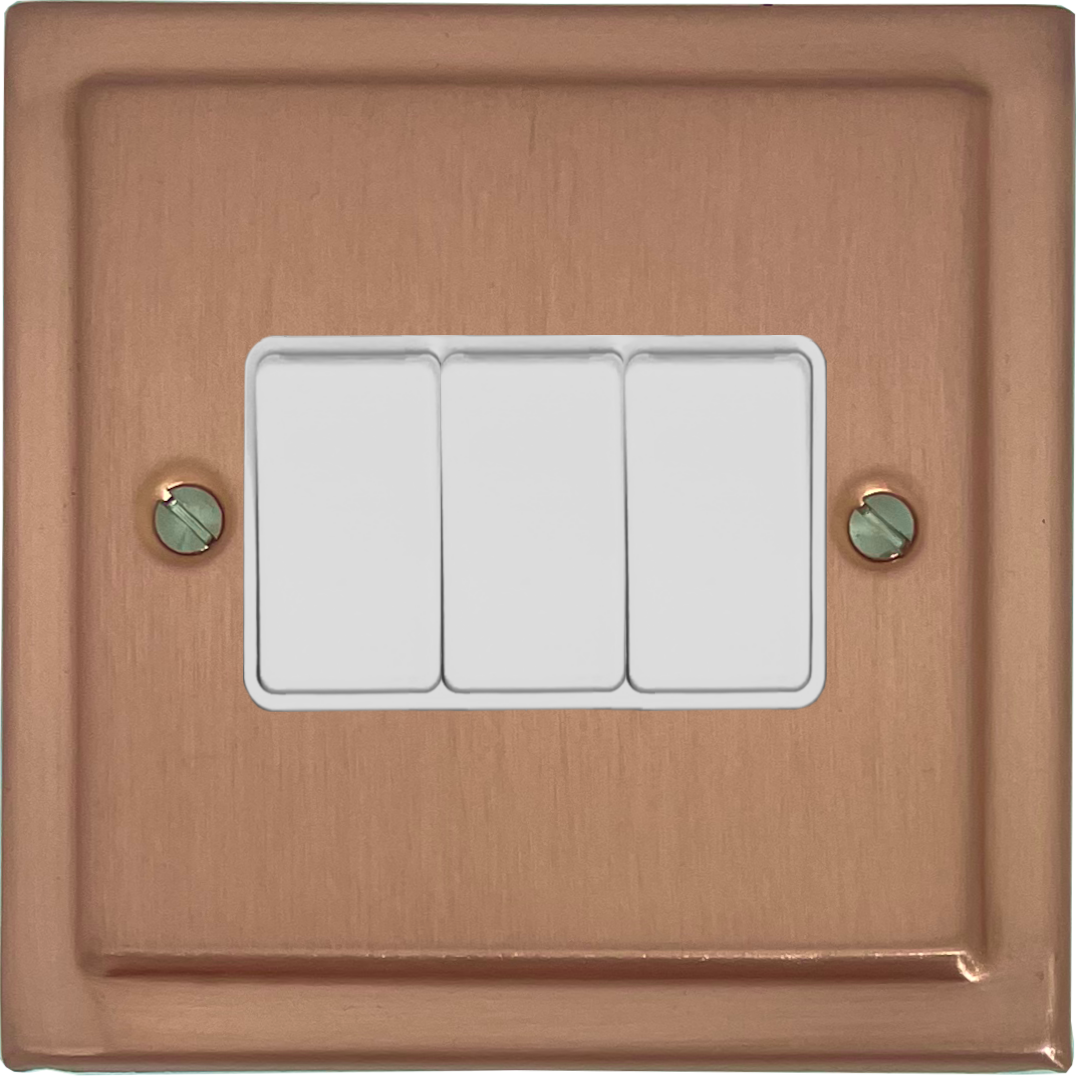 Victorian Rose Gold Light Switch (3 Gang/White Switch) VI.3W.RG
