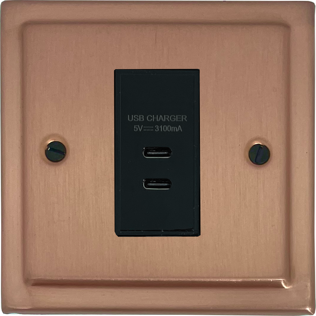 Victorian Rose Gold USB Charger (2x USB-C) (1 Gang/Black Insert) VI.42B.RG