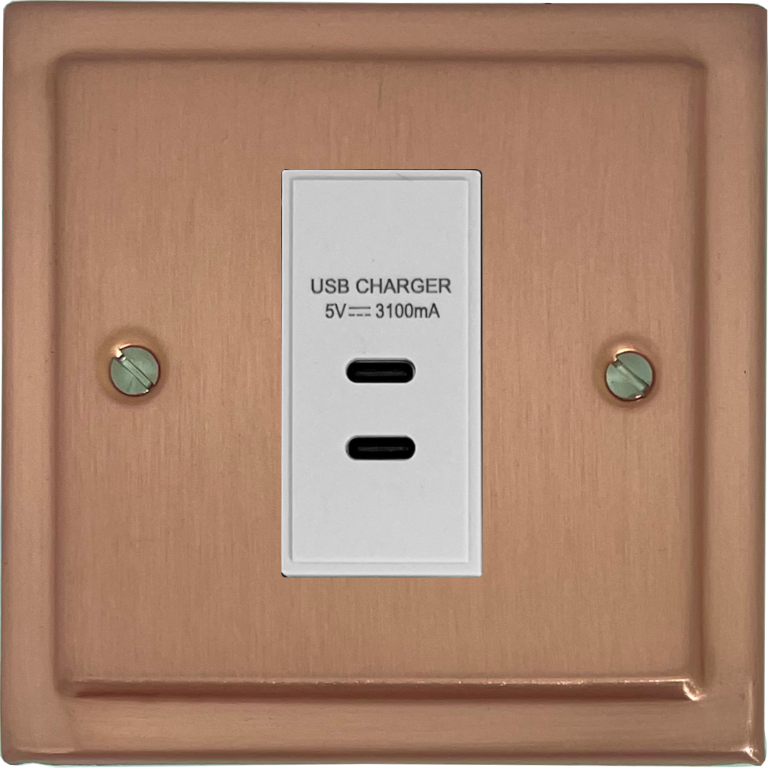 Victorian Rose Gold USB Charger (2x USB-C) (1 Gang/White Insert) VI.42W.RG