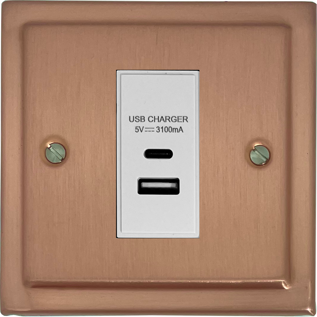 Victorian Rose Gold USB Charger (USB-A and USB-C) (1 Gang/White Insert) VI.41W.RG