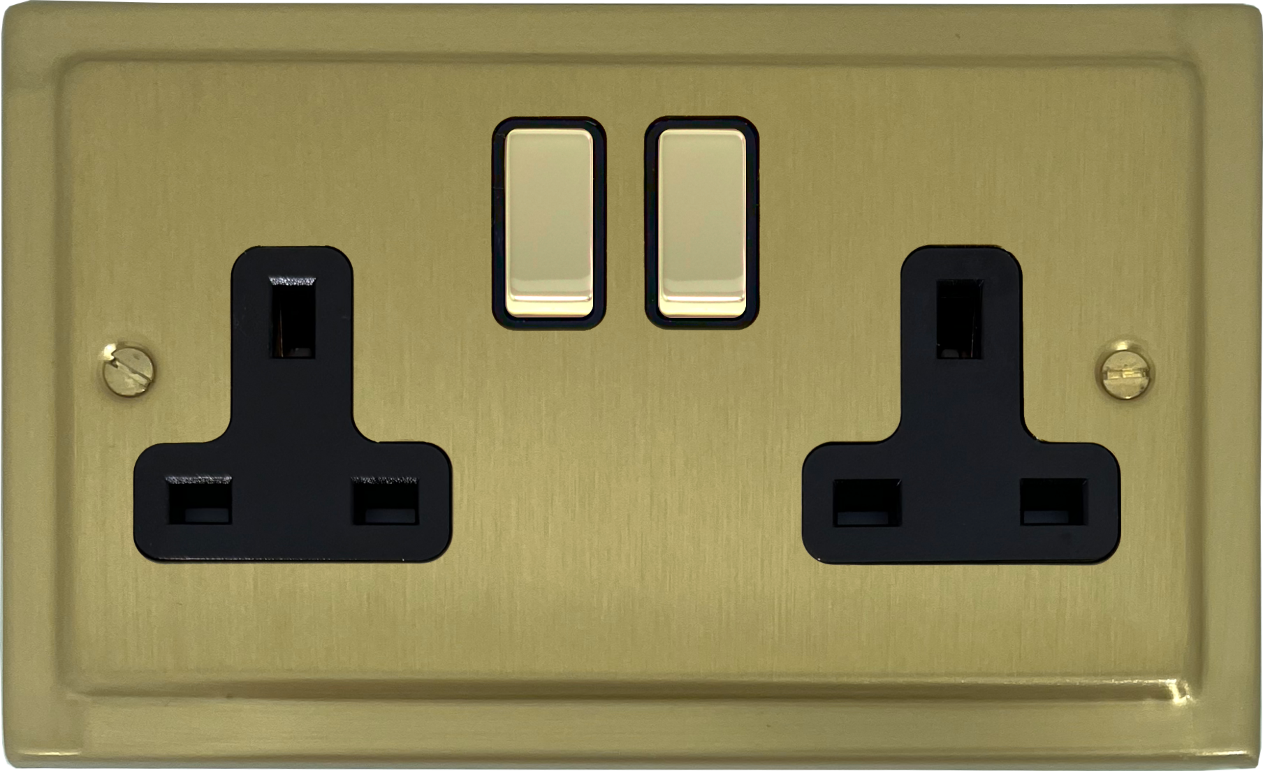 Victorian Satin Brass Double Socket (Brass Switch) VI.310.SB