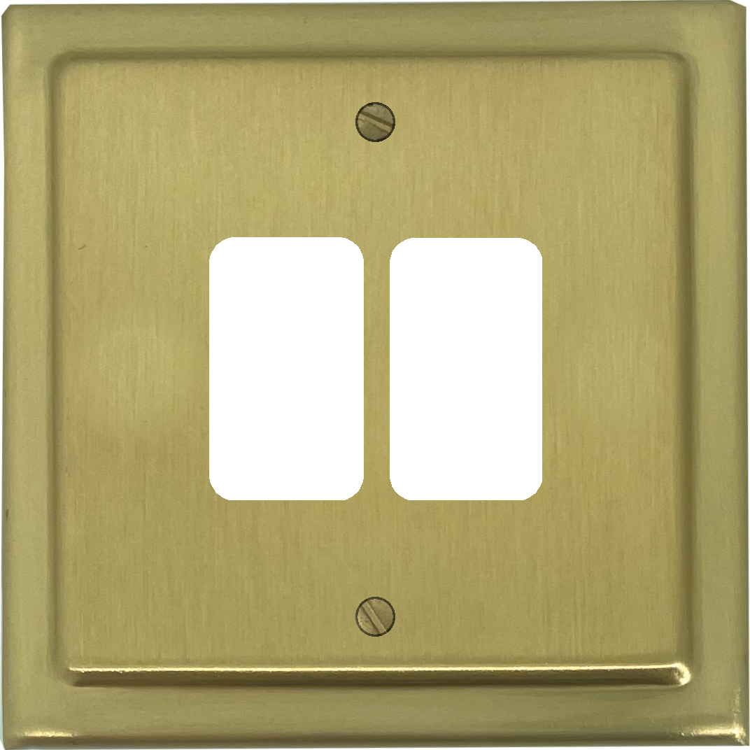 Victorian Satin Brass Grid Plate (2 Gang) - TSB72