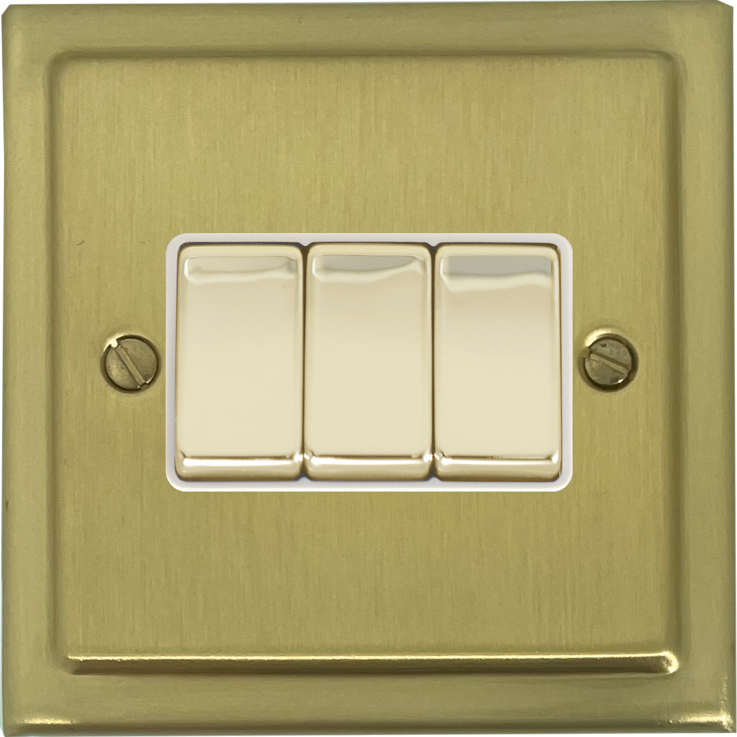 Victorian Satin Brass Light Switch (3 Gang/Brass Switch/White Insert) VI.203.SB