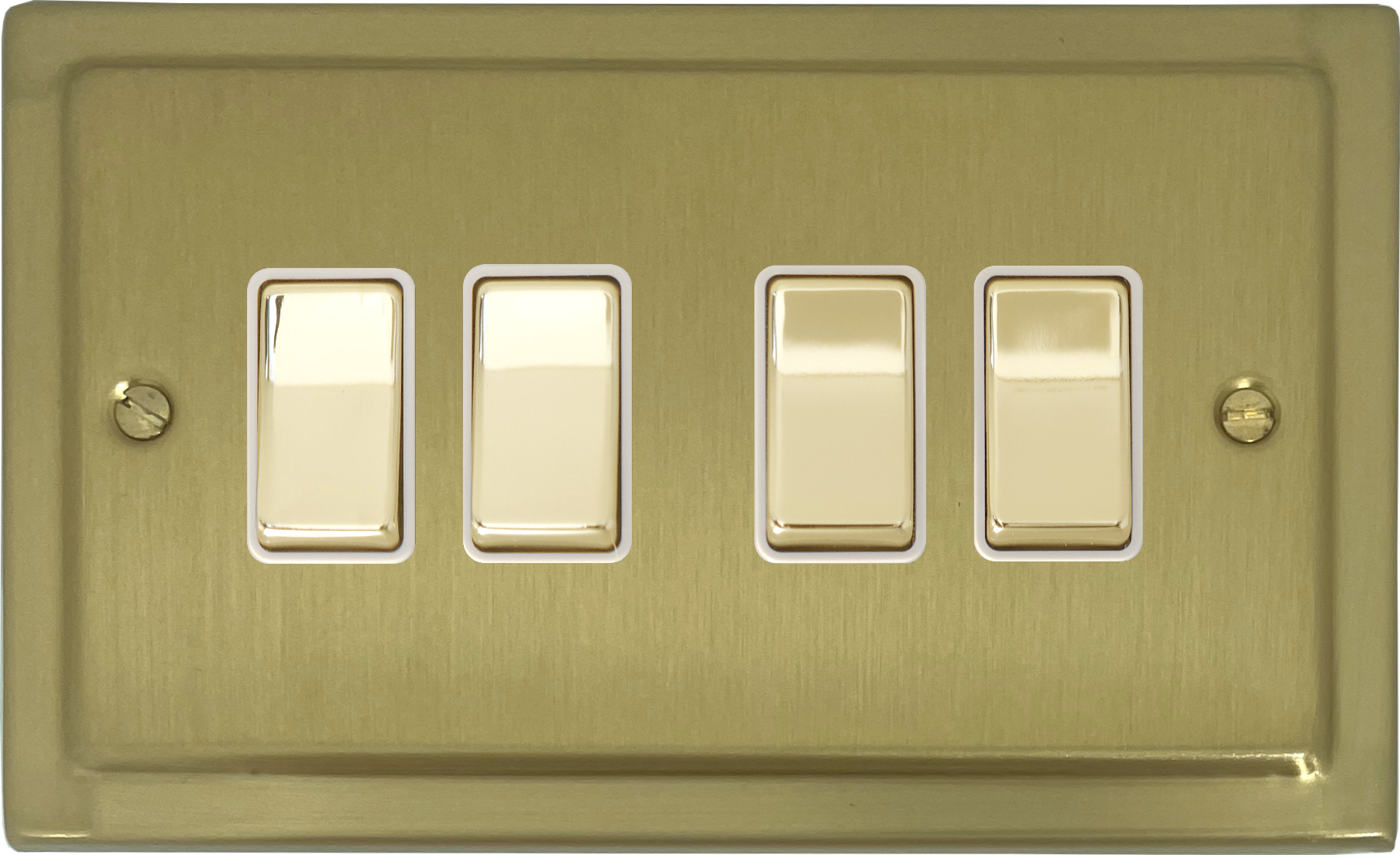 Victorian Satin Brass Light Switch (4 Gang/Brass Switches/White Insert) VI.204.SB