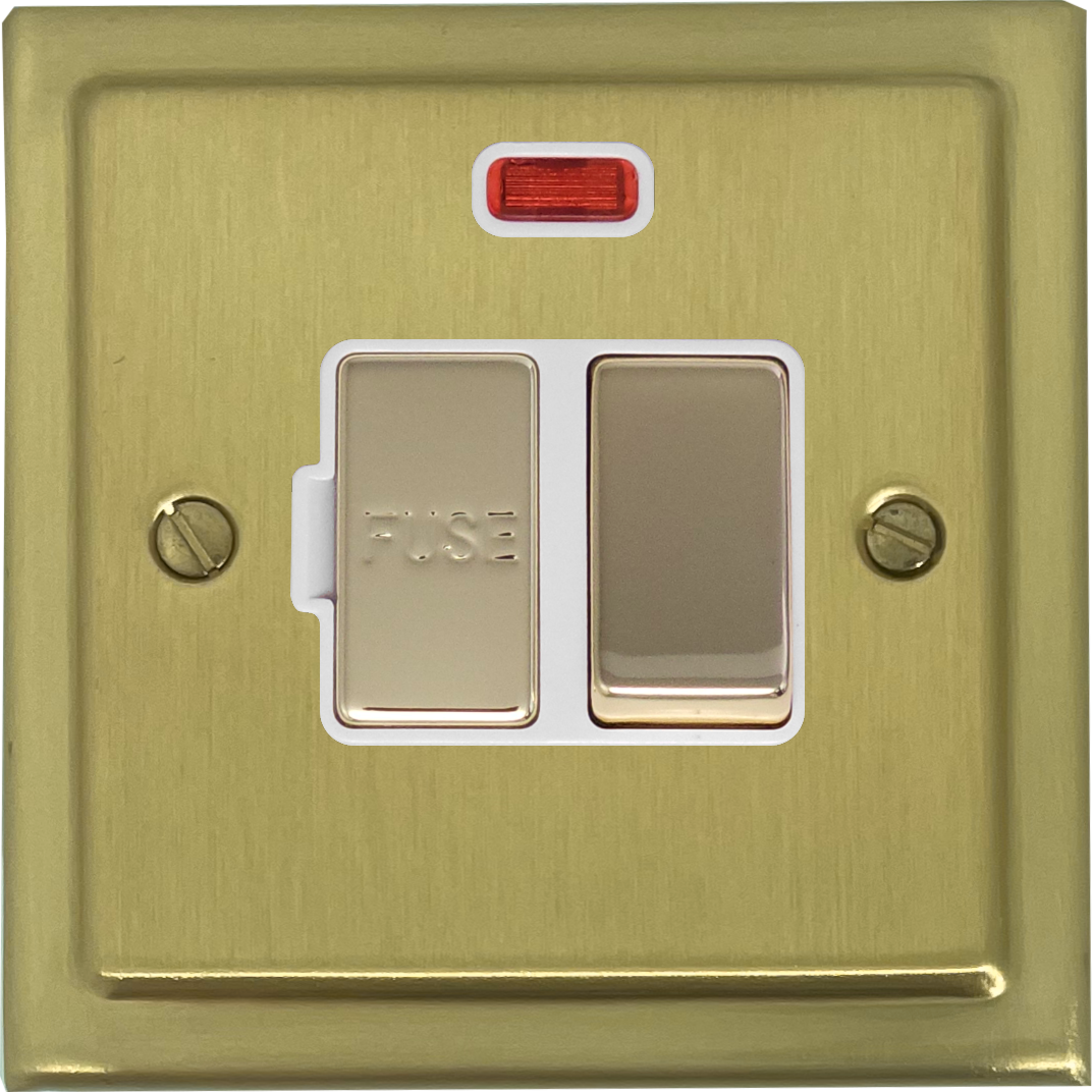 Victorian Satin Brass Switched Fused Spur with Neon (Brass Switch/White Insert) VI.227.SB