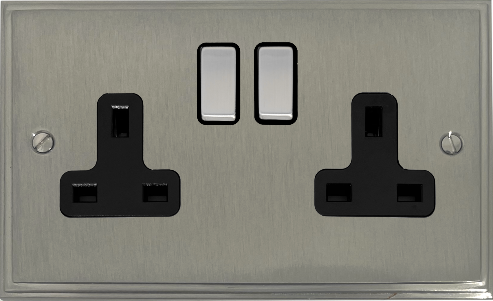 Victorian Satin Nickel Double Socket (Black Insert/Steel Switches) VC.310.SN