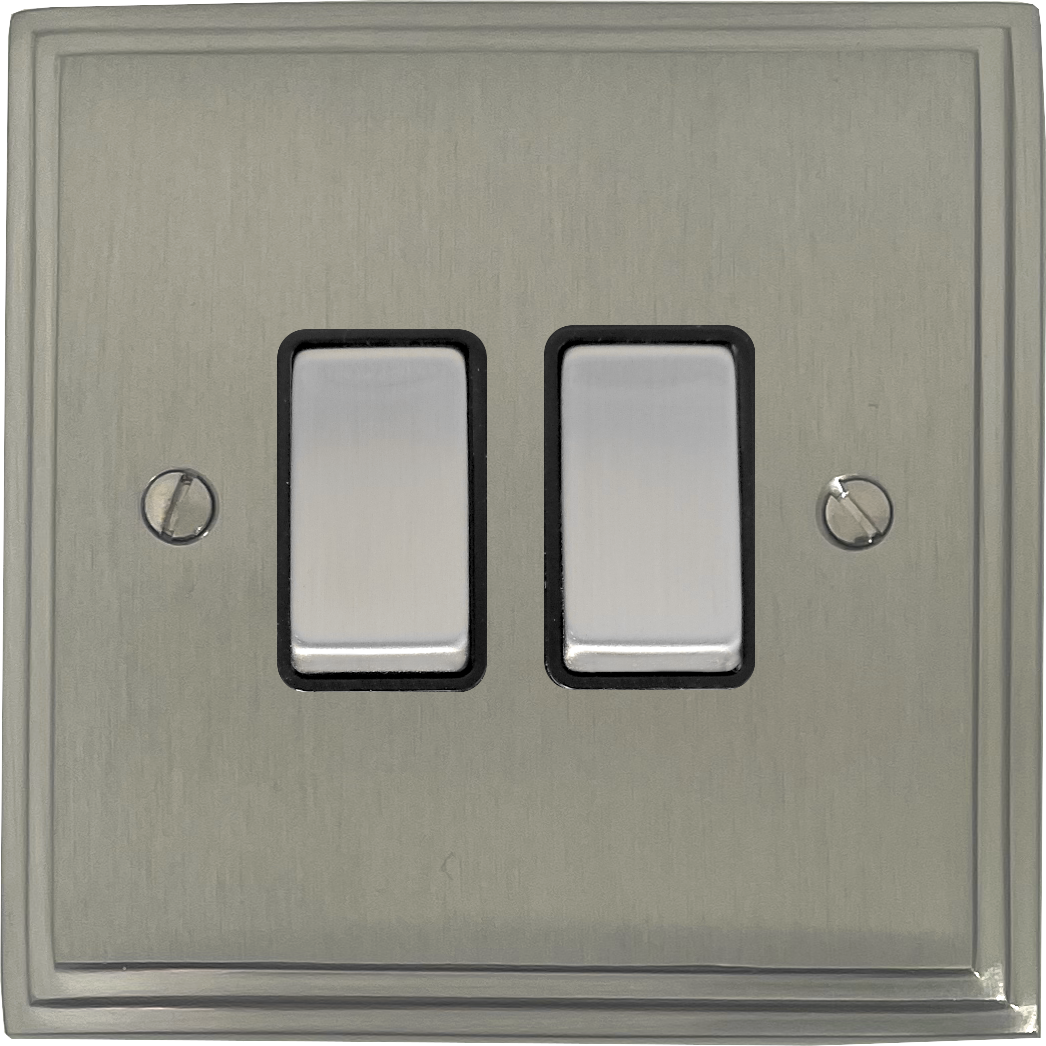 Victorian Satin Nickel Switch (2 Gang/Black Insert/Steel Switches) VC.302.SN