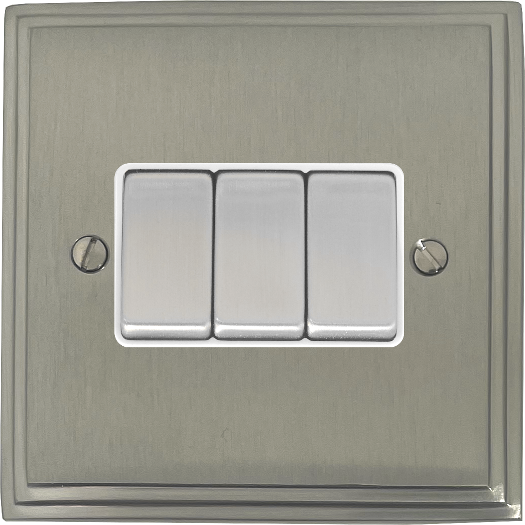 Victorian Satin Nickel Switch (3 Gang/White Insert/Steel Switches) VC.203.SN