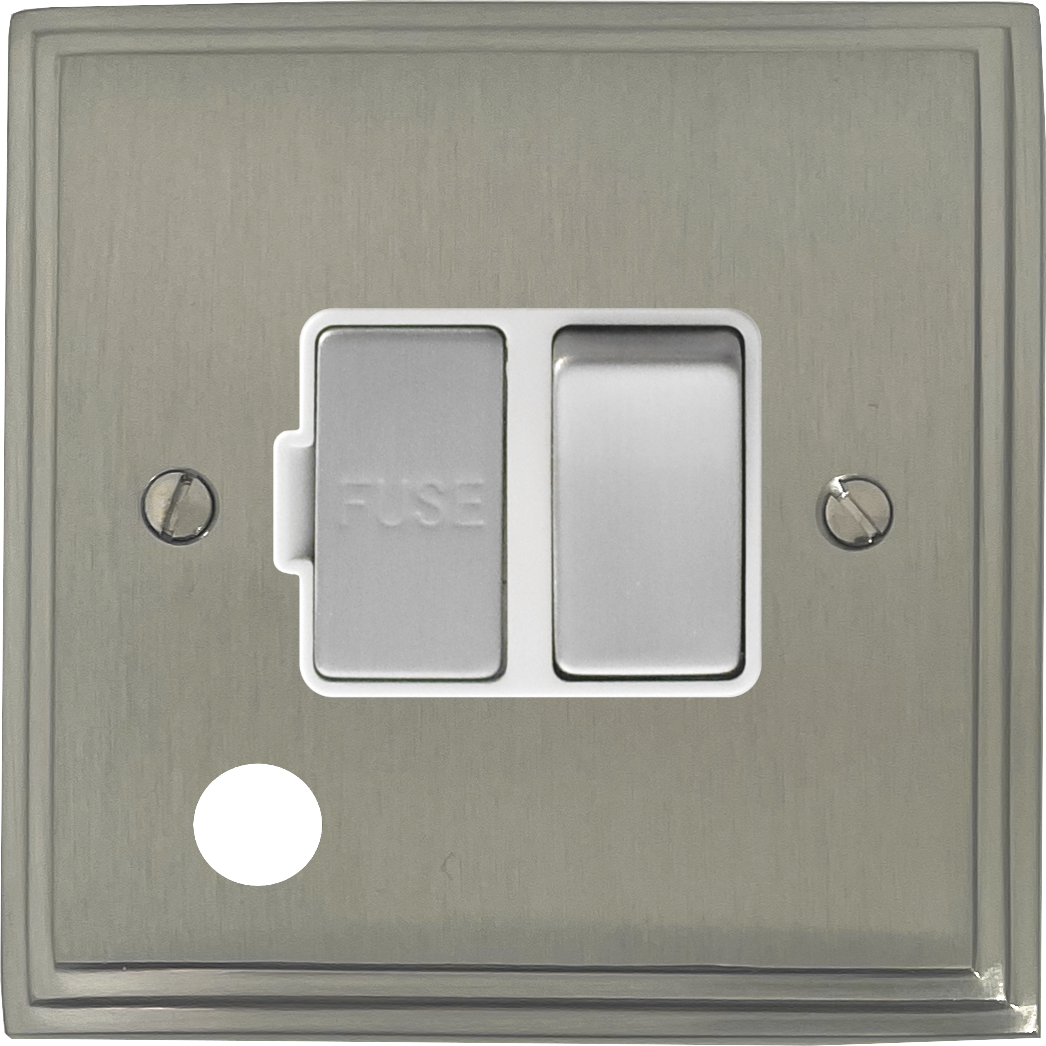 Victorian Satin Nickel Switched Fused Spur with Flex Outlet (White Insert/Stainless Steel Switch) - VSN256