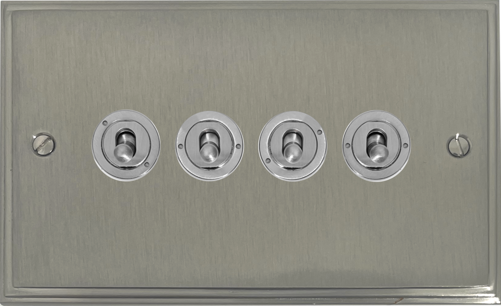 Victorian Satin Nickel Toggle Plate (4 Gang/Brushed Steel Toggle) VC.384.SN