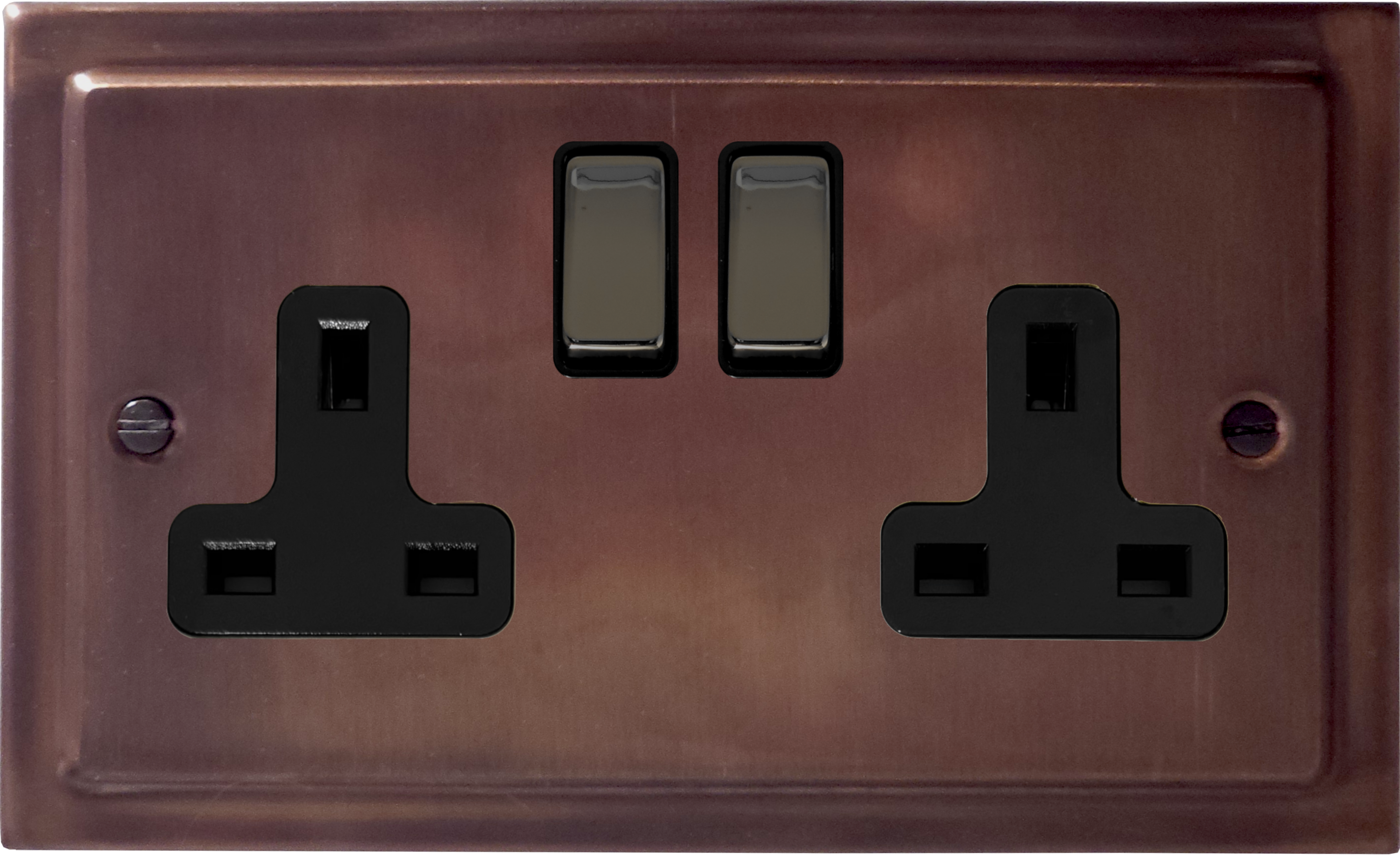 Victorian Tarnished Copper Double Socket (Black Nickel Switch) VI.310.TC