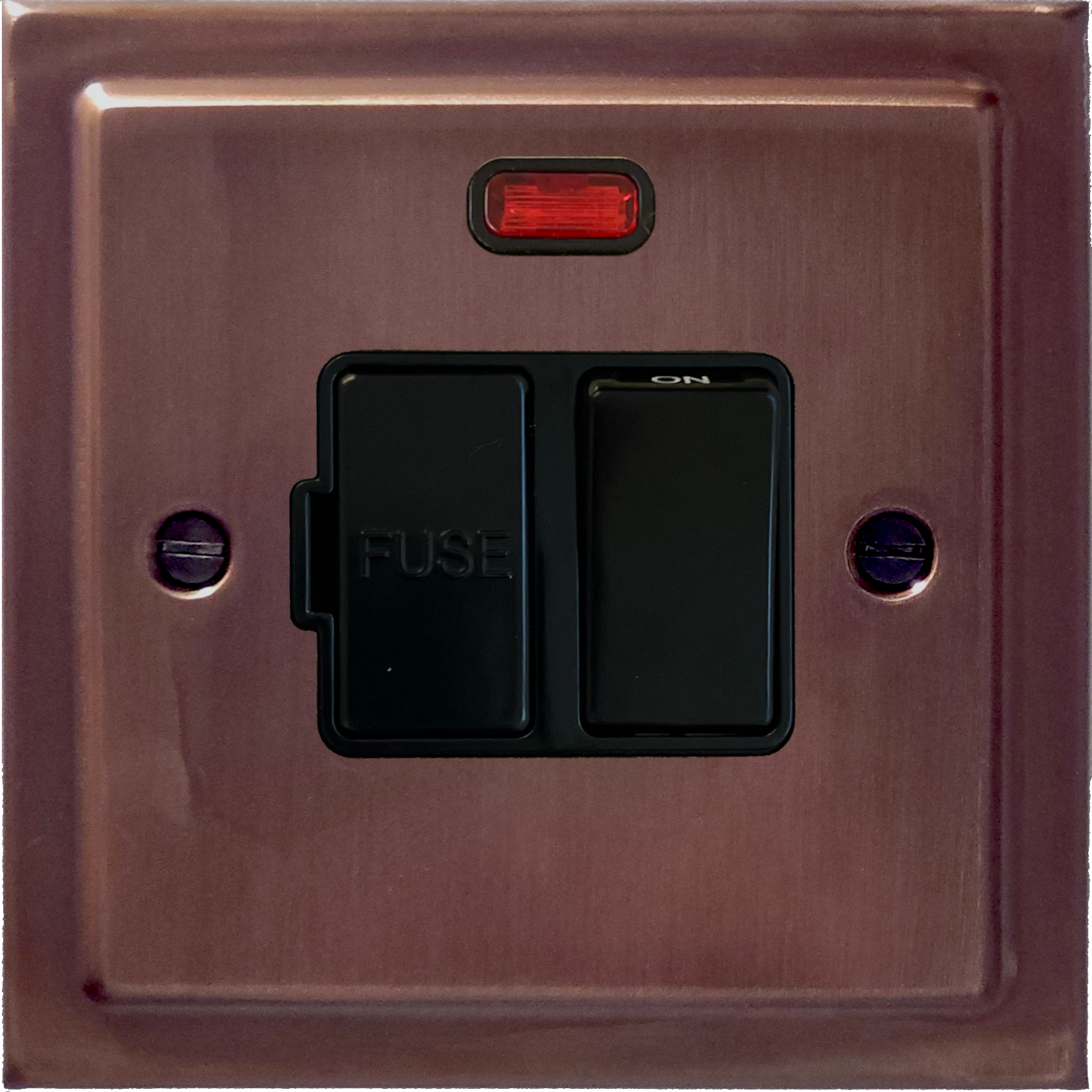 Victorian Tarnished Copper Switched Fused Spur with Neon (Black Switch) VI.27B.TC
