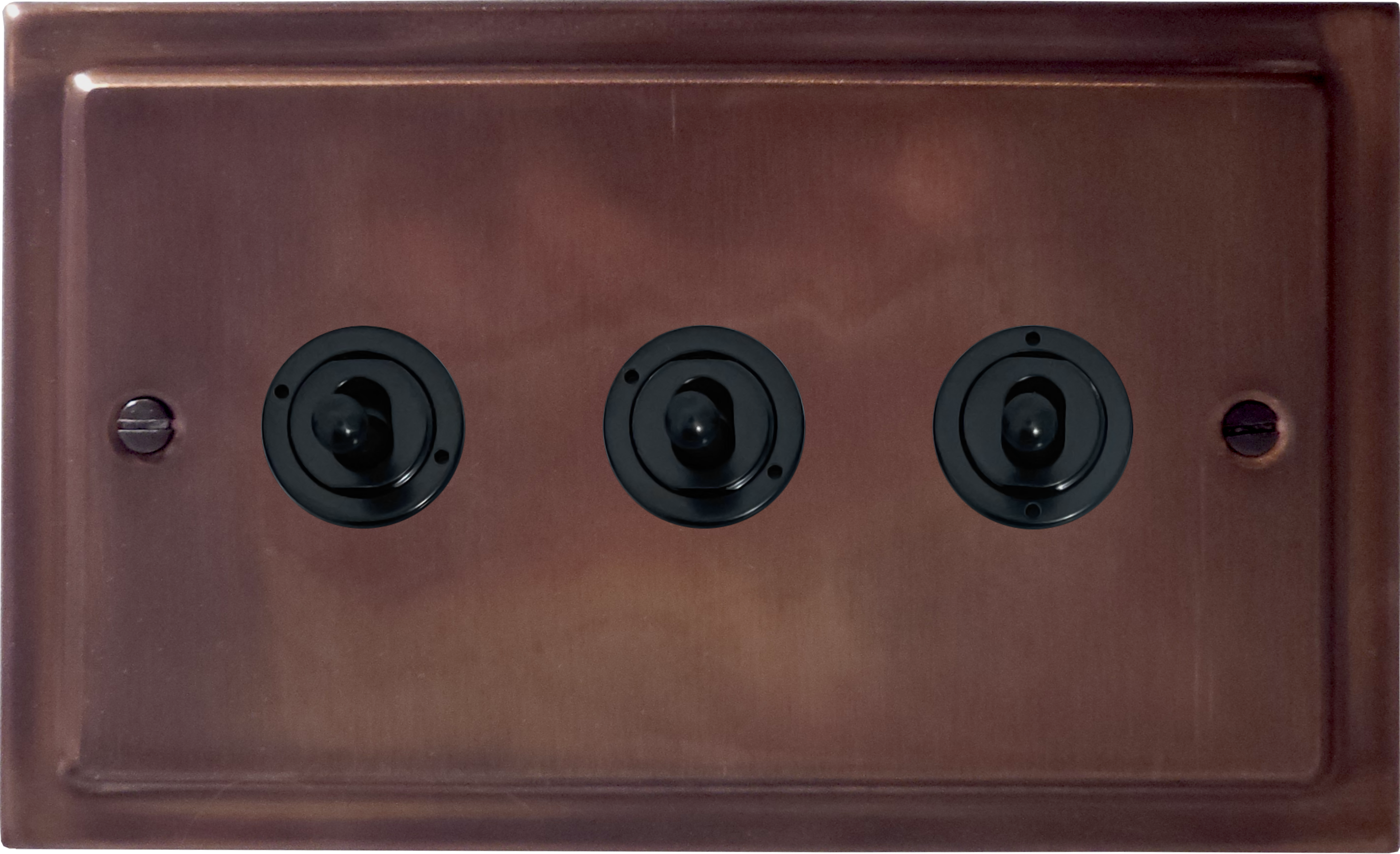 Victorian Tarnished Copper Toggle Switch (3 Gang) VI.383FBK.TC