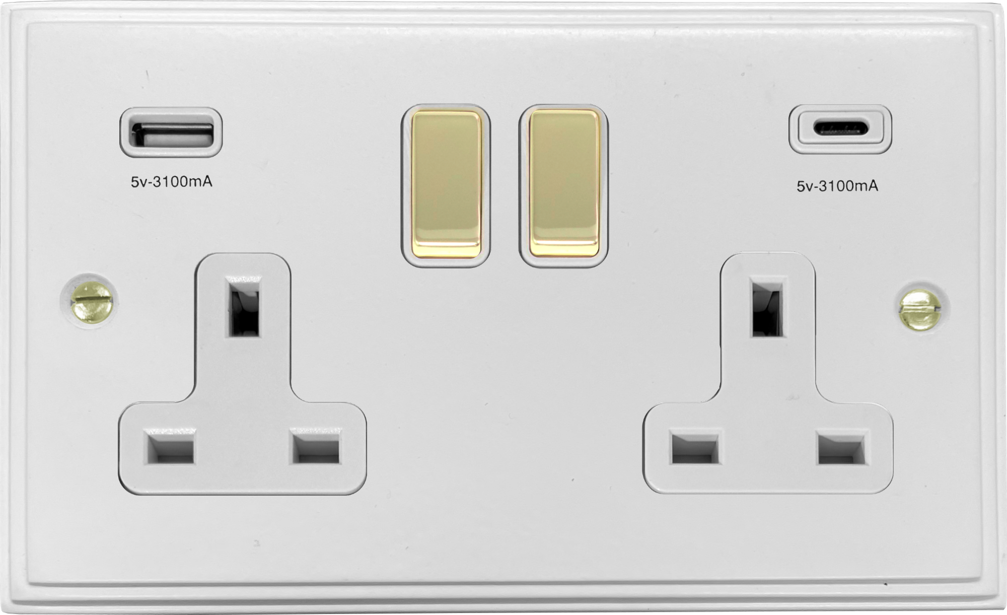 Victorian White Double Socket with USB (USB-A and USB-C/Polished Brass Switches) VC.2911PB.W