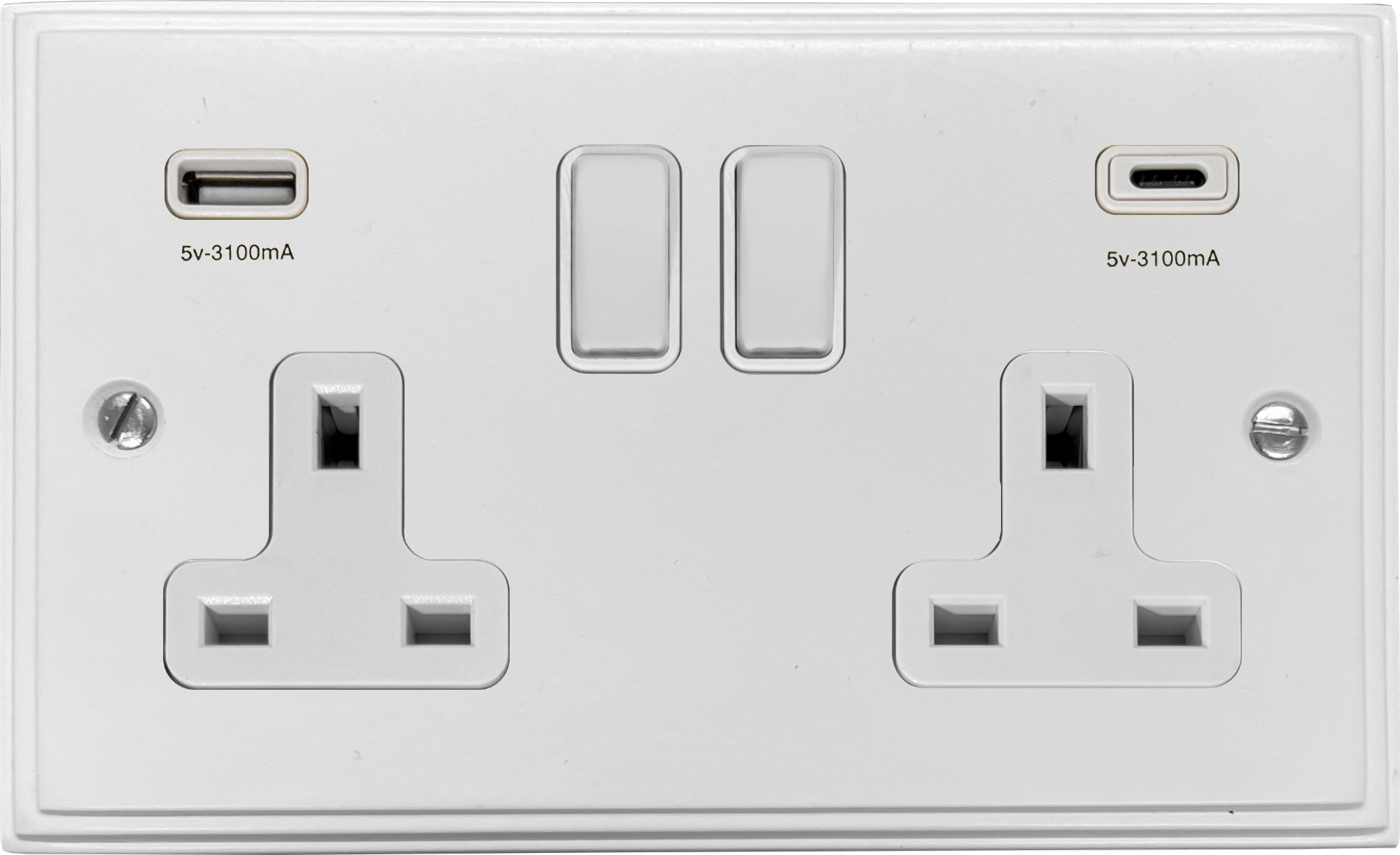 Victorian White Double Socket with USB (USB-A and USB-C/White Switches) VC.911W.W