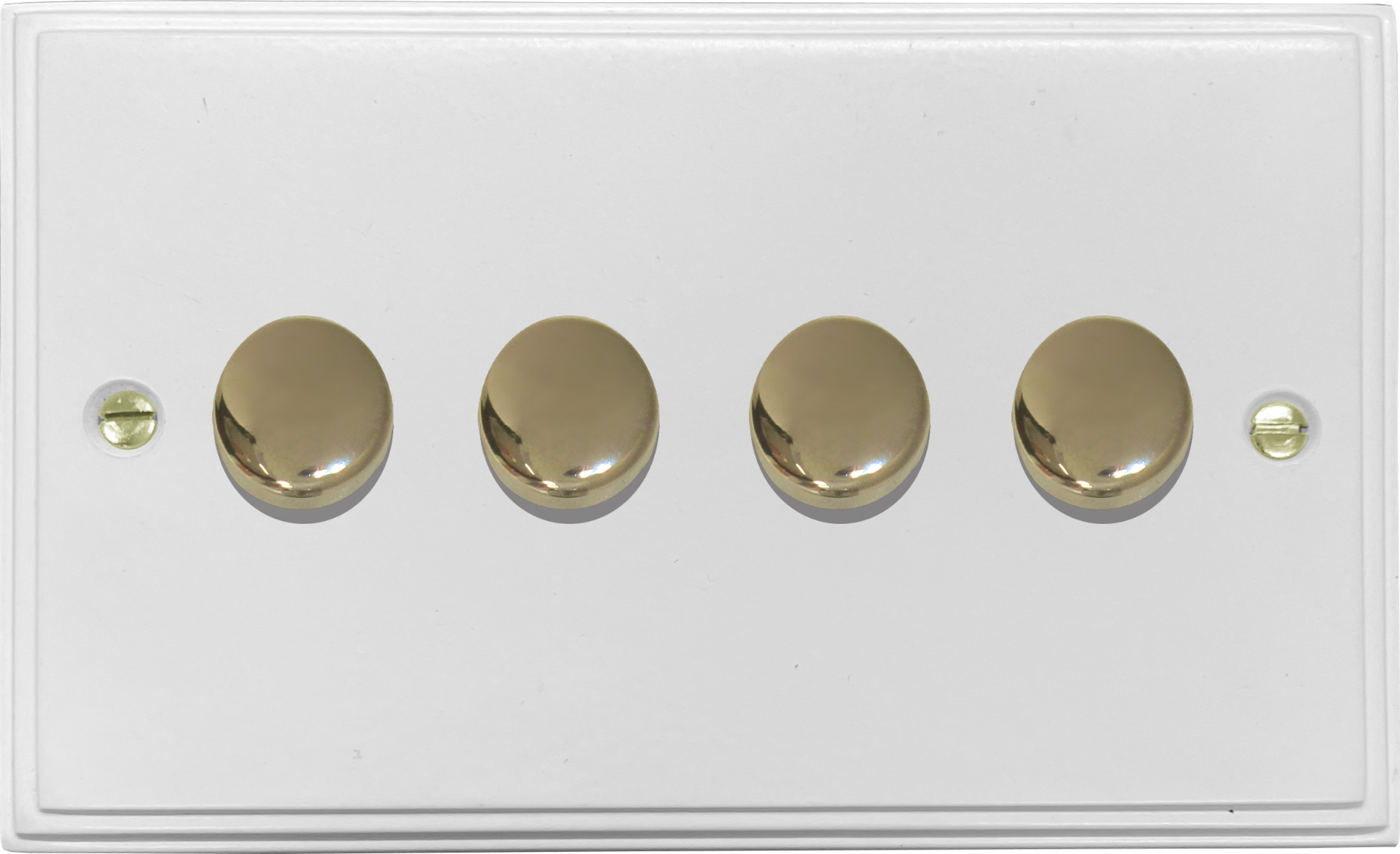 Victorian White LED Dimmer (4 Gang/Polished Brass Caps) - VW524-PB