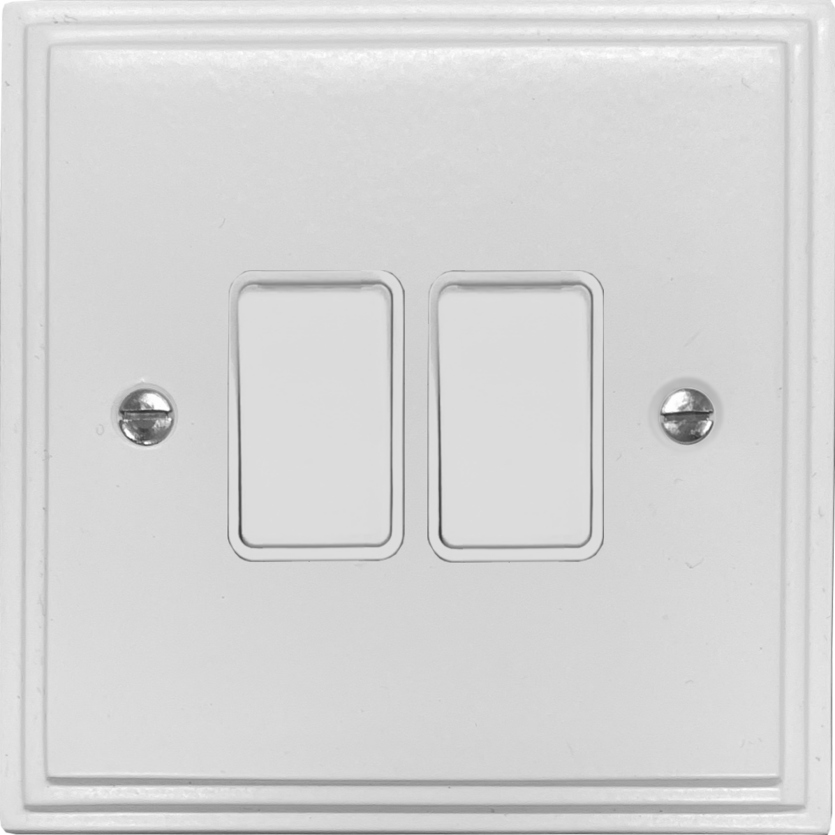 Victorian White Light Switch (2 Gang) VC.2W.W