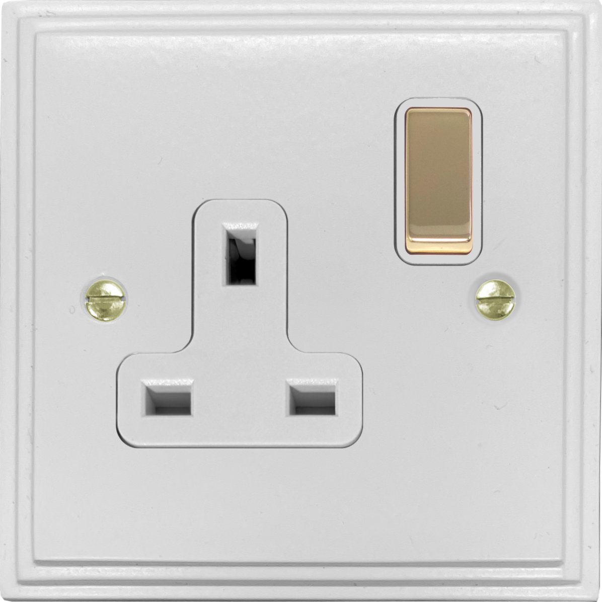 Victorian White Single Socket (White Insert/Polished Brass Switch) VC.209PB.W