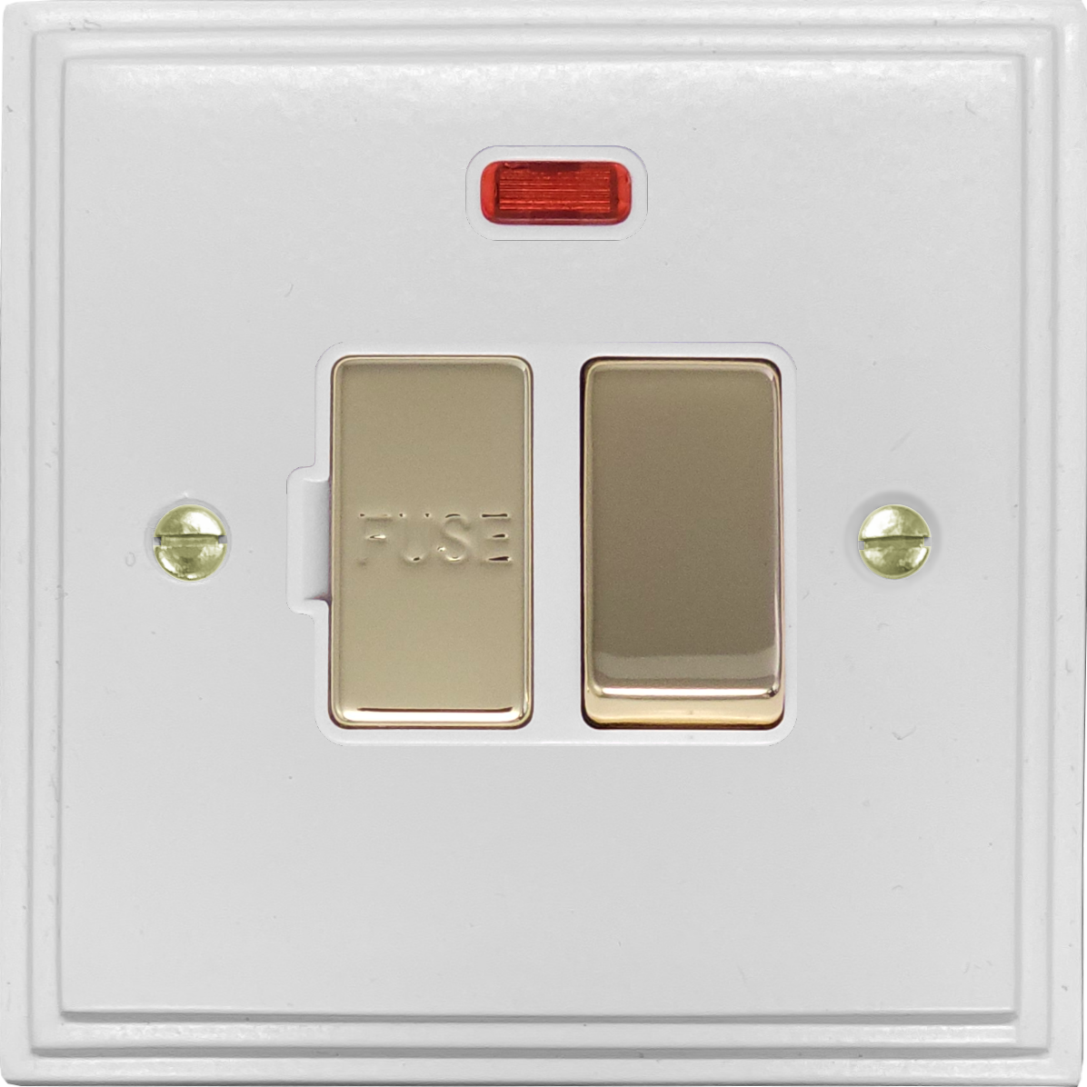 Victorian White Switched Fused Spur with Neon (White insert/Polished Brass Switch) VC.227PB.W