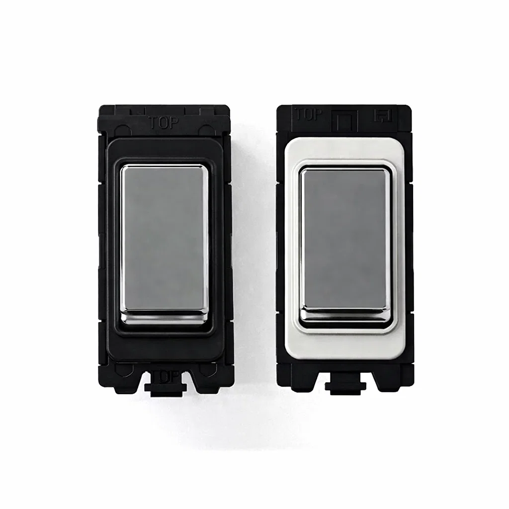 G&H Electrical's Polished Chrome Grid Switch Modules offer a sleek and modern solution for those seeking a contemporary touch in their electrical installations. The polished chrome finish exudes a sense of sophistication, making these modules ideal for modern interiors. Beyond the aesthetic appeal, G&H Electrical ensures practicality by providing a variety of switch options. Users can choose from standard rocker switches for simplicity or opt for dimmer controls for more nuanced lighting control. What sets these modules apart is the engraving option, allowing for a personalised touch. Whether it's labeling switches for specific lights or functions, or adding a unique detail to each switch, the engraving feature adds a bespoke element to the design.