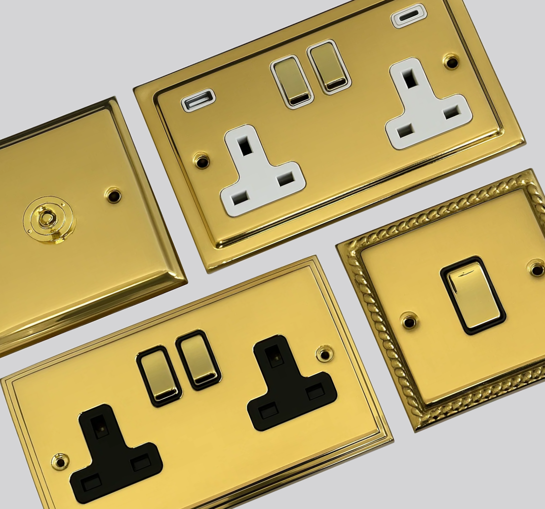 We have a wide variety of polished brass sockets and switches to choose from, so we are confident we will have the right plate for your room or house's decor.