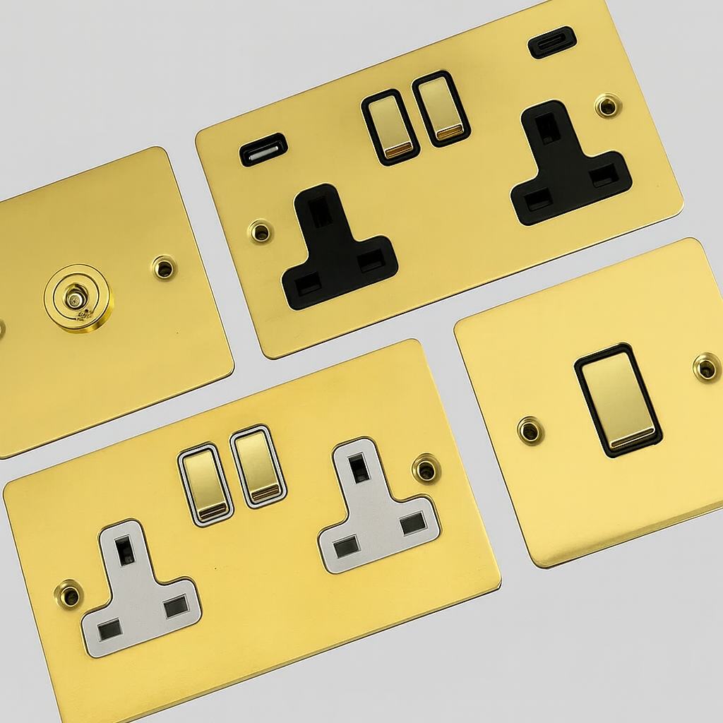 This is the flat polished brass unlacquered range from G+H Electrical Accessories.