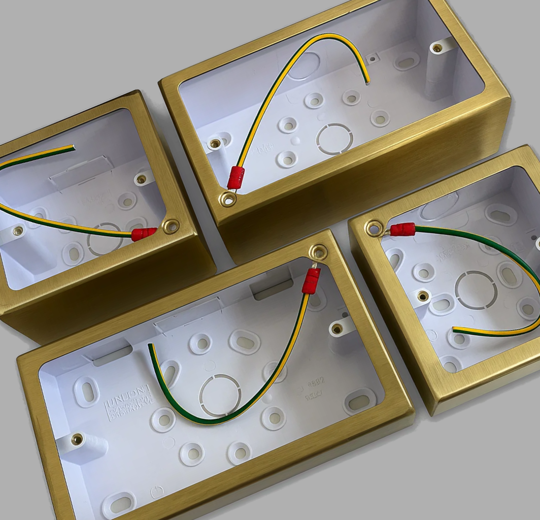 This is part of our wider range of satin brass sockets and switches. We also have a number of other pattress boxes available.