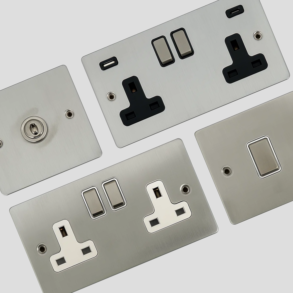 Flat Brushed Chrome Sockets and Switches