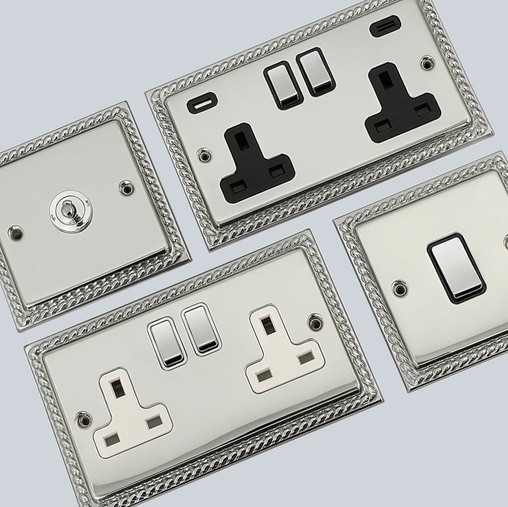 We have a range of polished chrome sockets and switches with a Georgian finish.