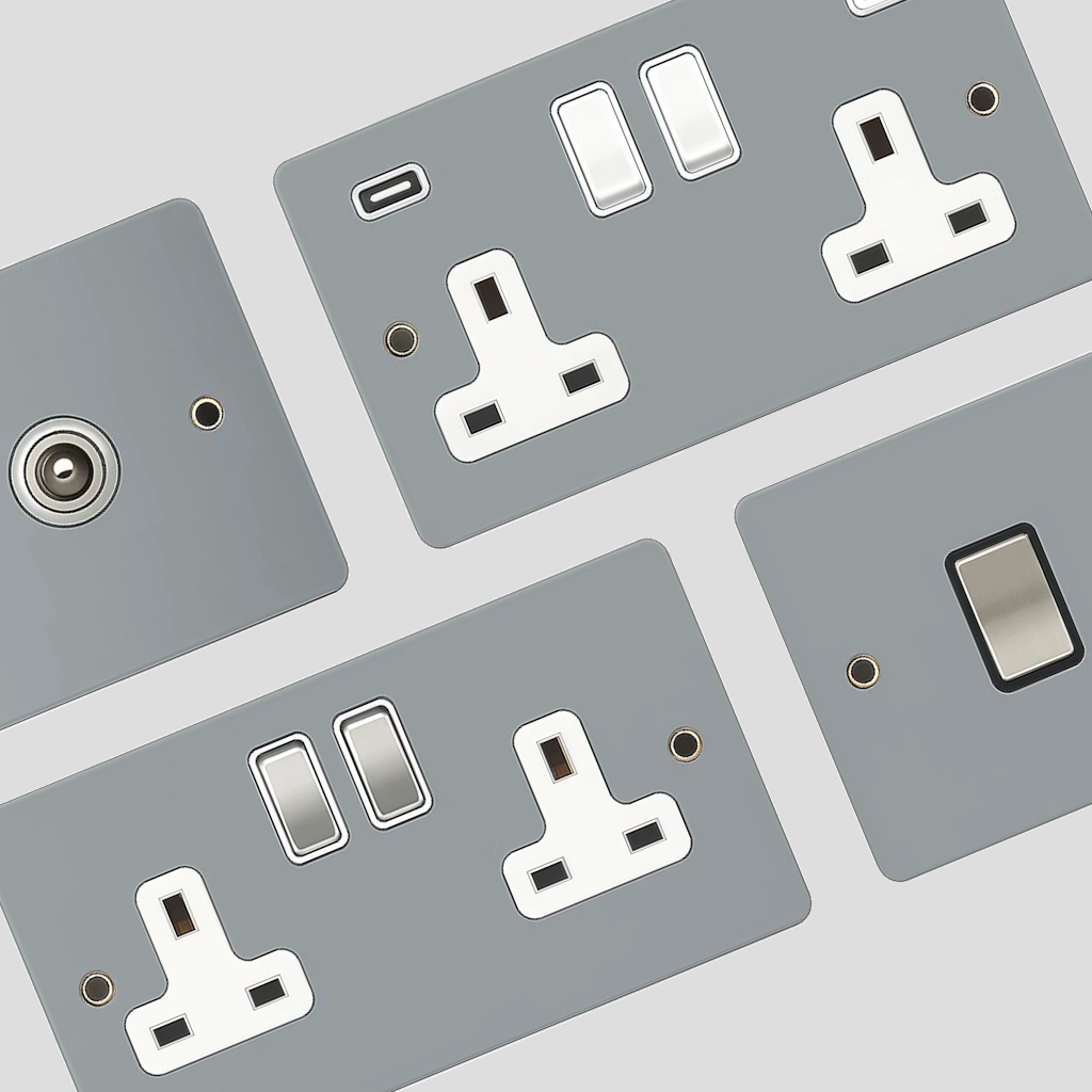Available in a full range of switches, sockets, data plates, cooker switches and dimmers. There is also a choice of plastic switches or metal switches to complement your decor.