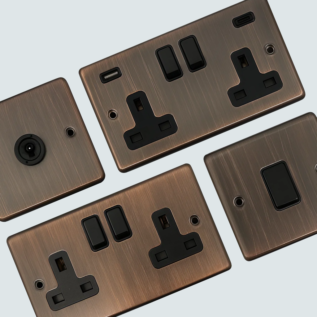 This is a full range of Contour Antique Copper, including switches, toggles, dimmers, sockets, data sockets and more.