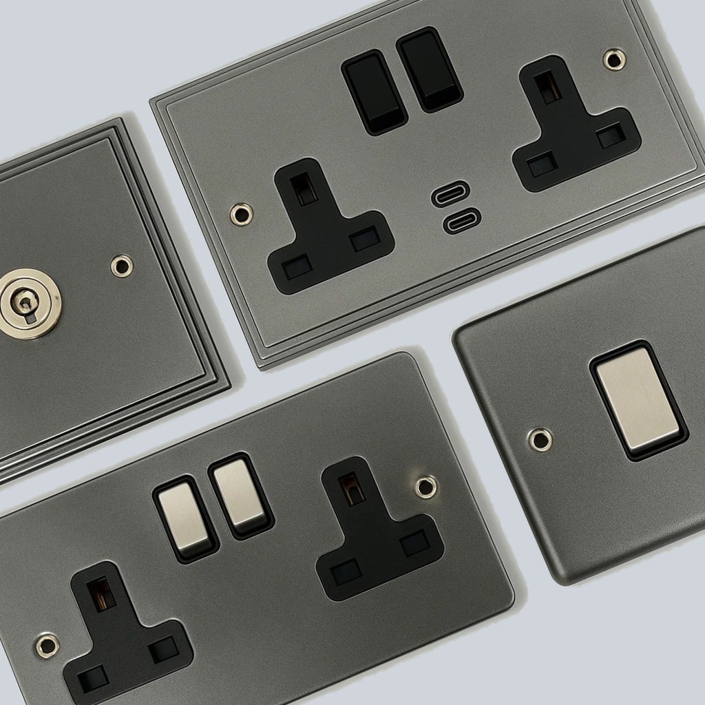 Looking for a stylish plate that's a little different from the normal steel and brass plates? Look no further than these Pewter sockets and switches.