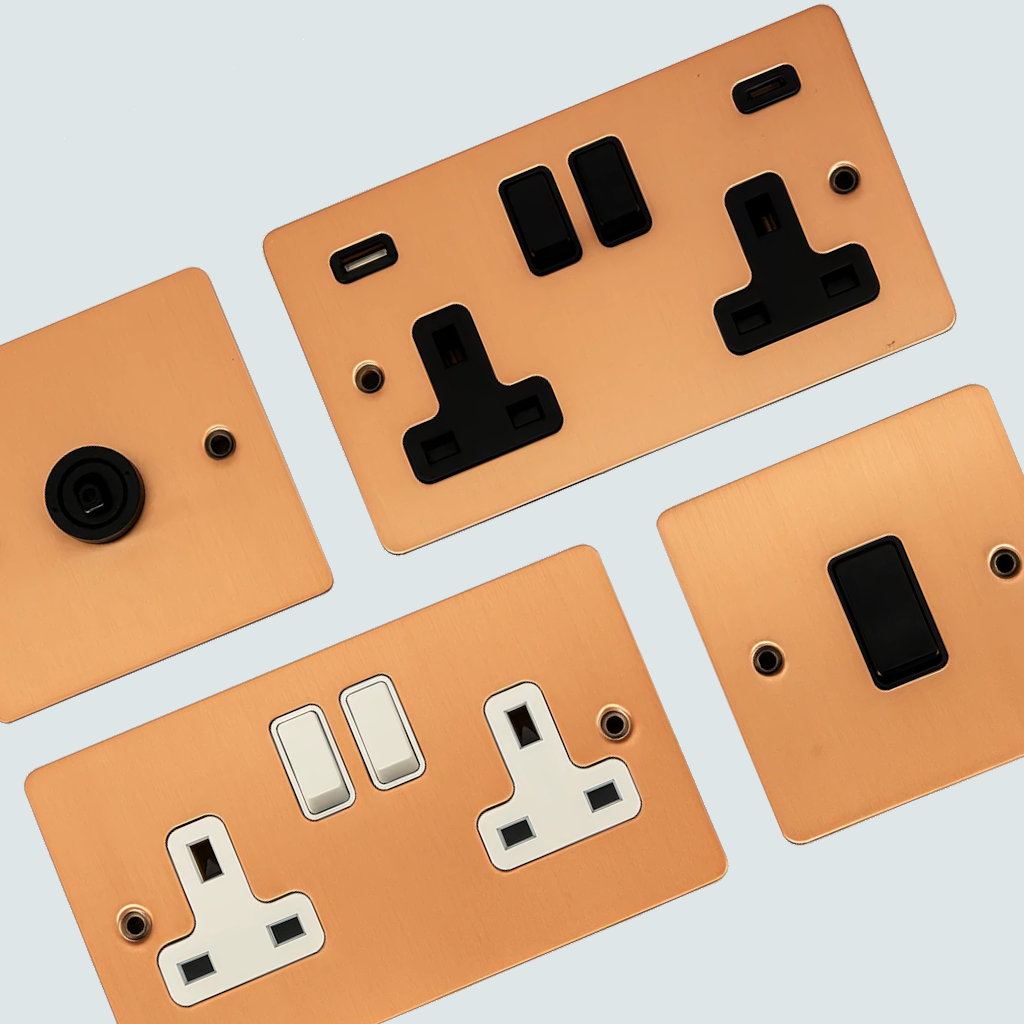 We have a range of flat rose gold sockets and switches. These plates are made by G+H Electrical Accessories.