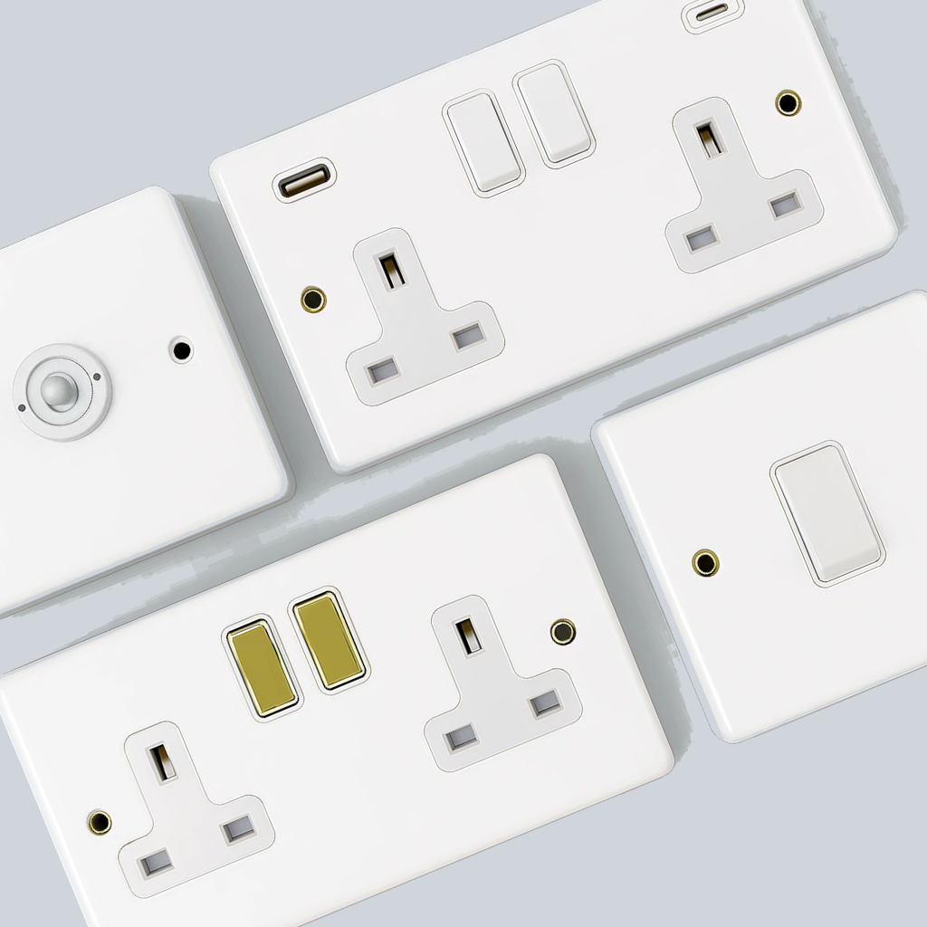 Unlike many similar switches, these are white metal switch plates with a choice of either white plastic, polished brass or chrome switches. Check availability below, we have toggles, switches and dimmers available to buy here at Socket Store.