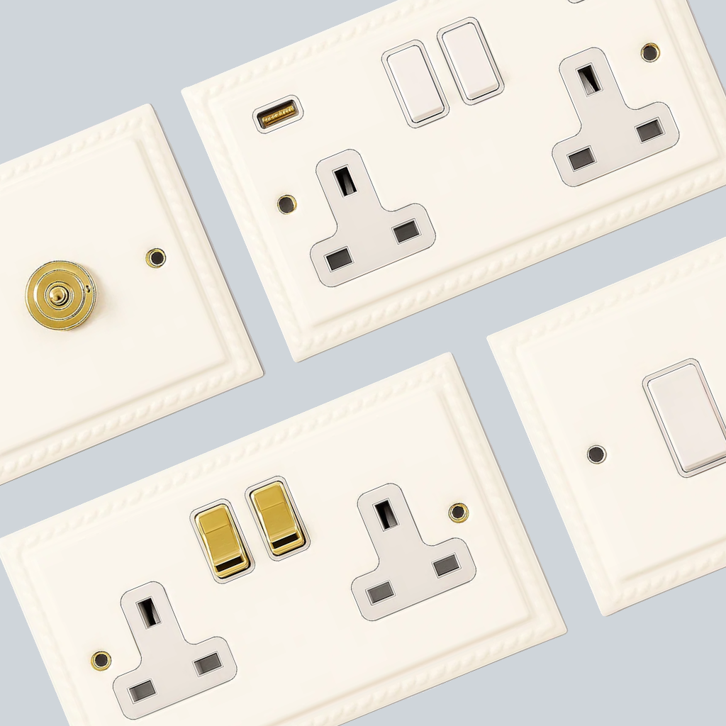 All the plates are finishes with the option of white inserts and white switches or polished brass switches for a stunning contrast. The toggles are polished brass and the dimmers are available with both white and polished brass dimmer caps.